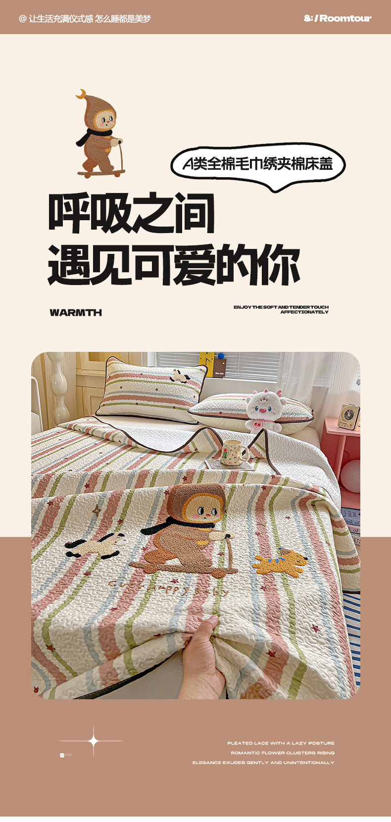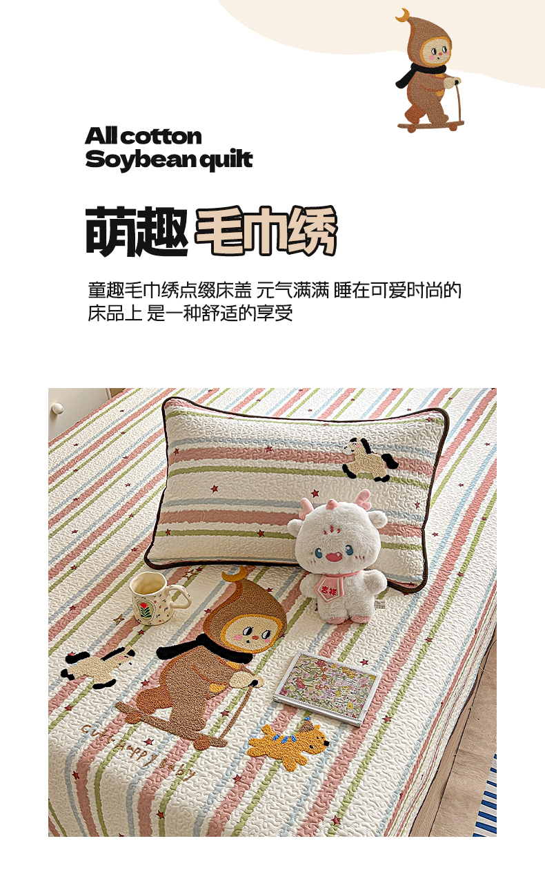 (总)鑫喜莱家纺 2026新款全棉纯棉原创毛巾绣床盖三件套单床盖软床垫,滑板小熊仔,酷酷的小熊,面包小狗,南瓜小兔,胖熊的星星,苹果小狗,线团小黑猫,星星人,组合图仅供展示-不可下单