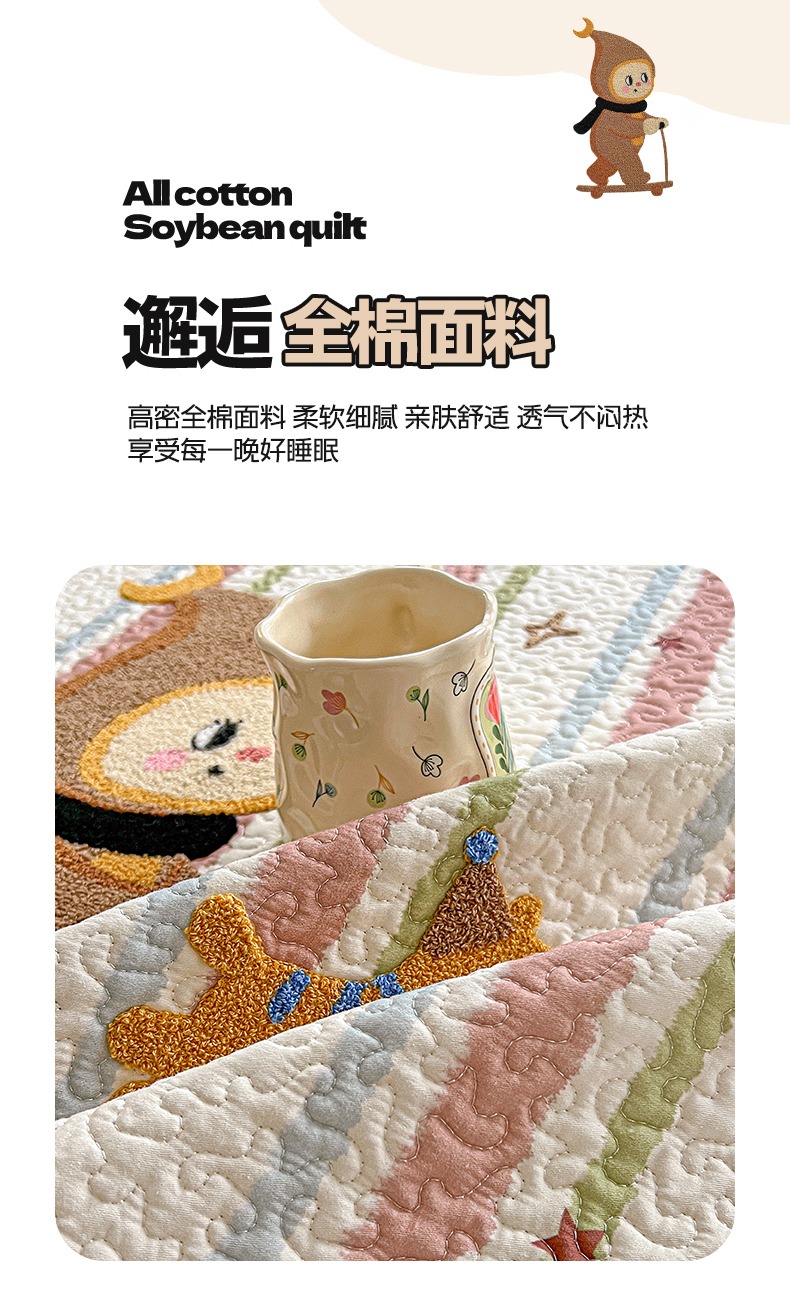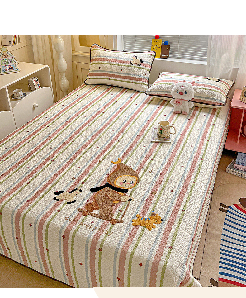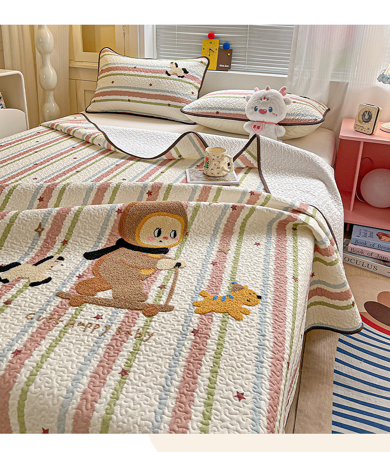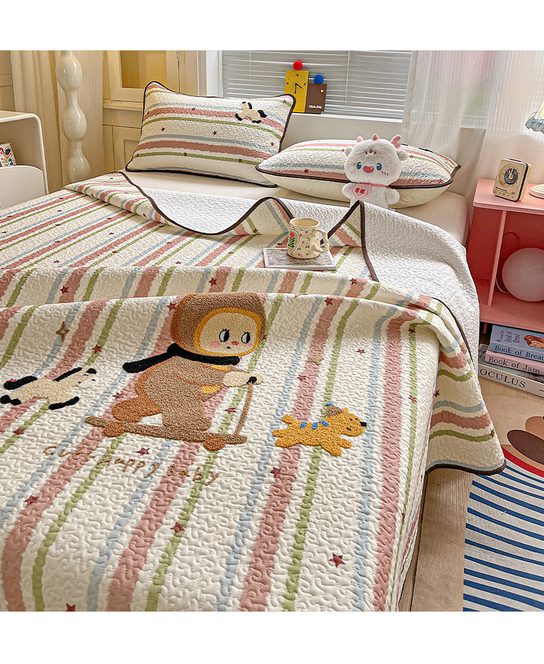 • 91家纺网 家纺一手货源 找家纺 (总)鑫喜莱家纺 2026新款全棉纯棉原创毛巾绣床盖三件套单床盖软床垫,滑板小熊仔,酷酷的小熊,面包小狗,南瓜小兔,胖熊的星星,苹果小狗,线团小黑猫,星星人,组合图仅供展示-不可下单
