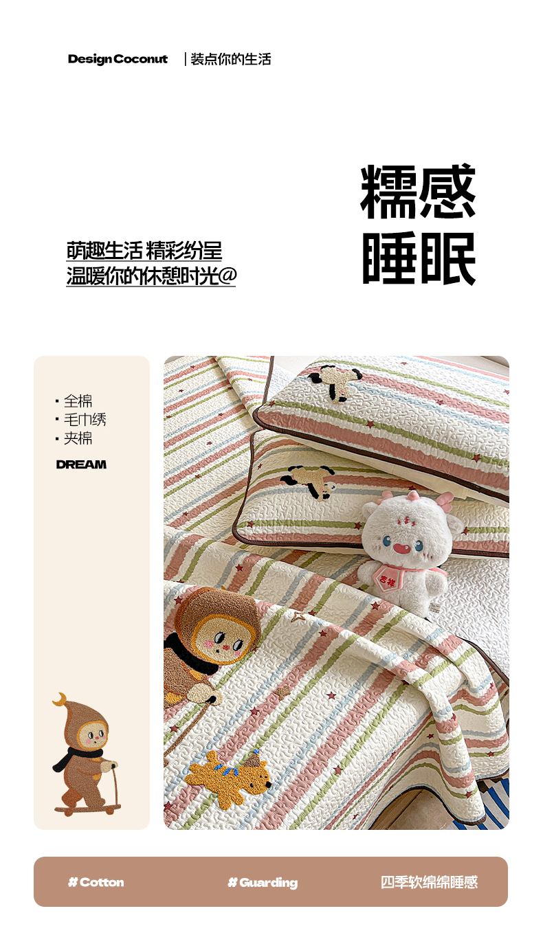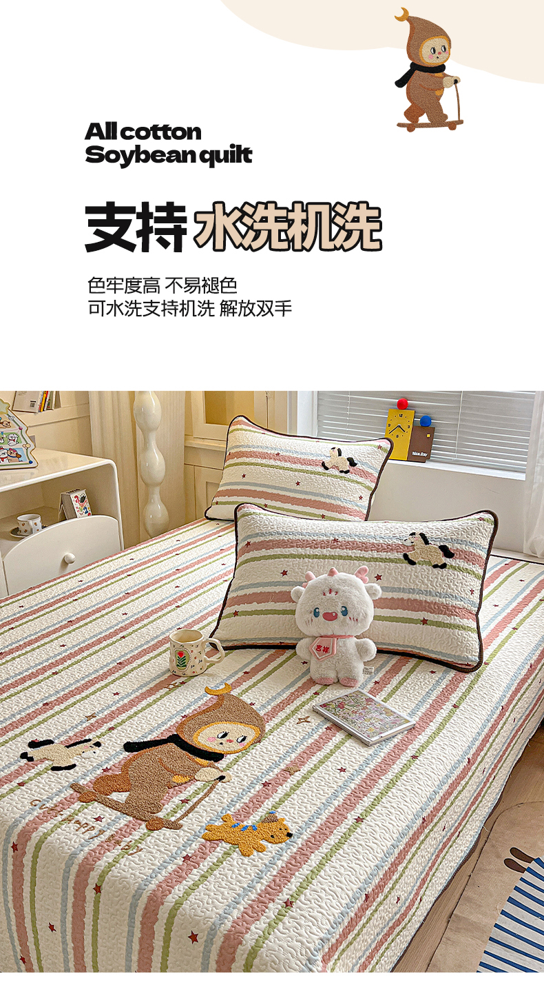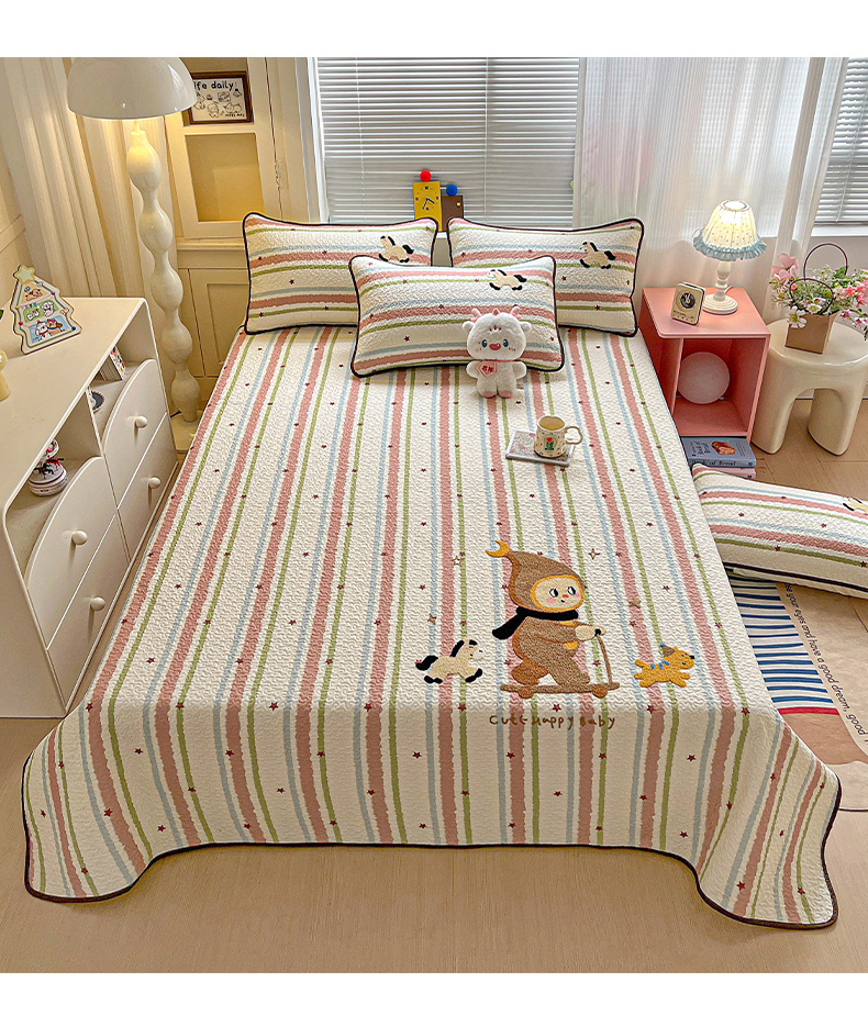 • 91家纺网 家纺一手货源 找家纺 (总)鑫喜莱家纺 2026新款全棉纯棉原创毛巾绣床盖三件套单床盖软床垫,滑板小熊仔,酷酷的小熊,面包小狗,南瓜小兔,胖熊的星星,苹果小狗,线团小黑猫,星星人,组合图仅供展示-不可下单