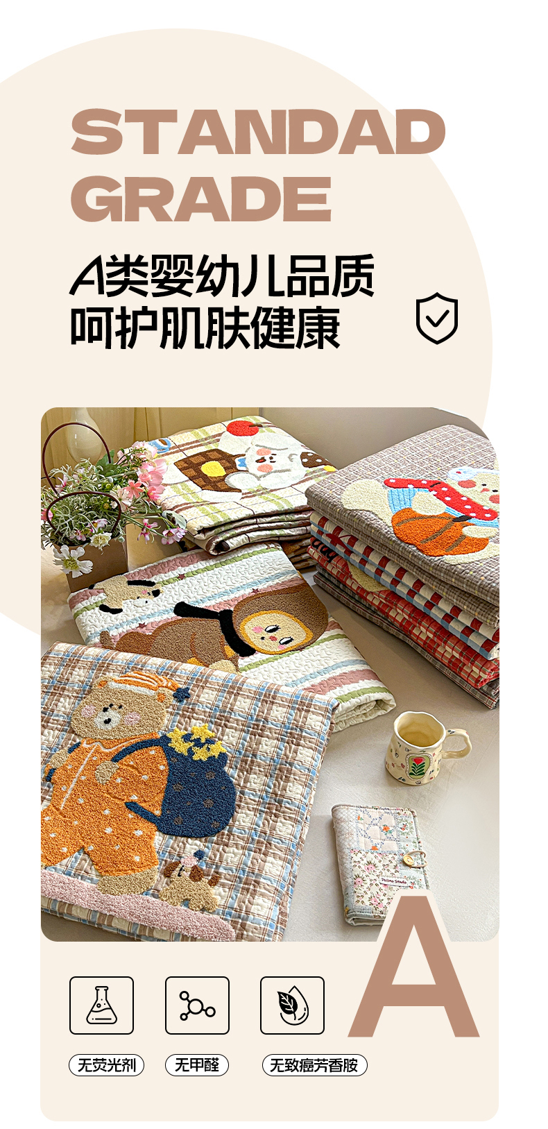(总)鑫喜莱家纺 2025新款原创宝宝绒毛巾绣床盖三件套单床盖床垫单件床盖,冰淇淋兔,魔法小象,苹果小狗,狮子王,晚安小兔,组合图(仅供展示不可下单)