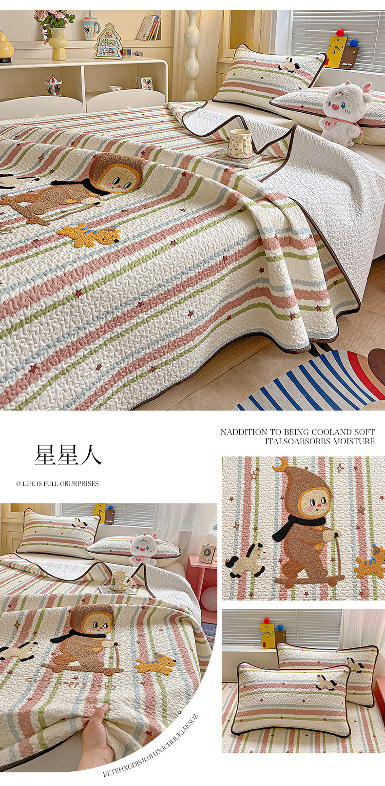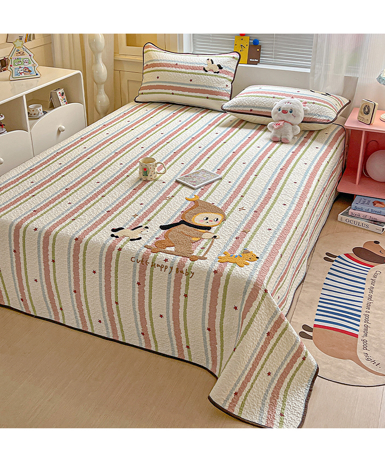鑫喜莱家纺 2026新款全棉纯棉原创毛巾绣床盖三件套单床盖软床垫 星星人