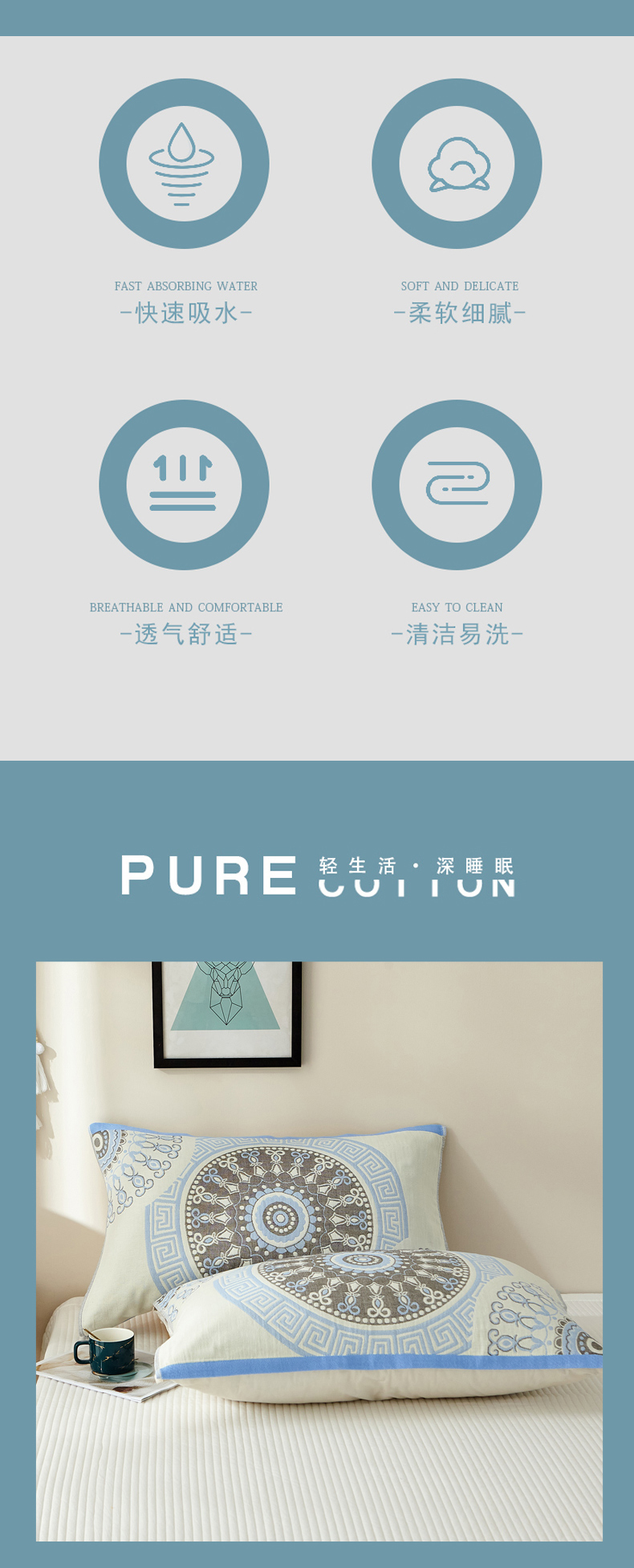 朴尔家纺-毛巾被 2026新款素雅系列全棉系列四层纱布枕巾 年轮-绿