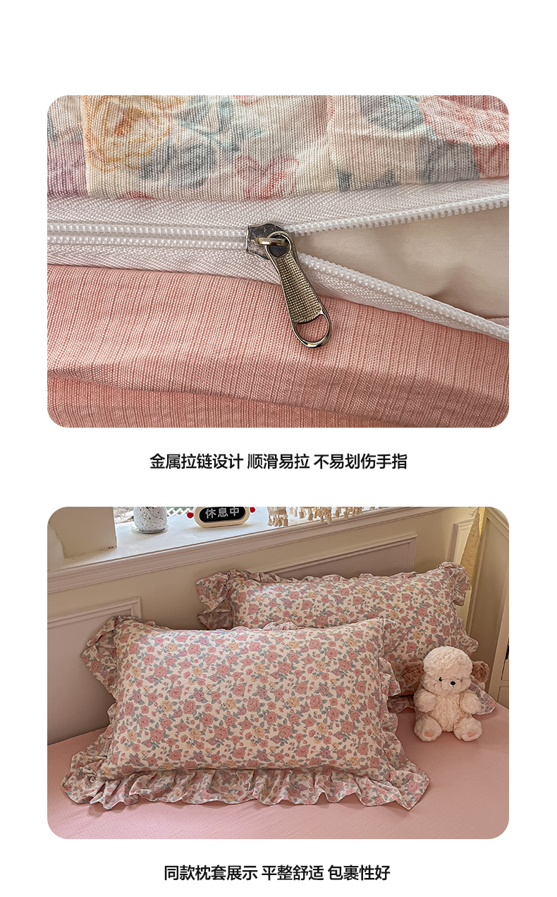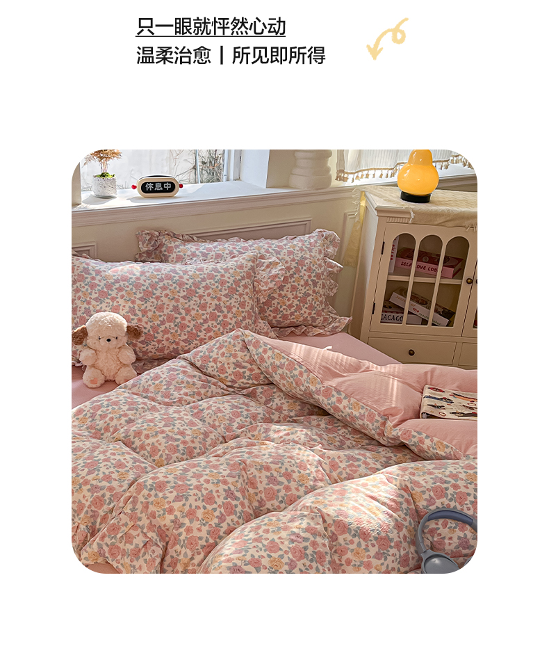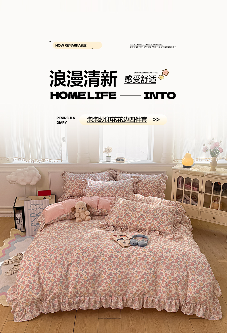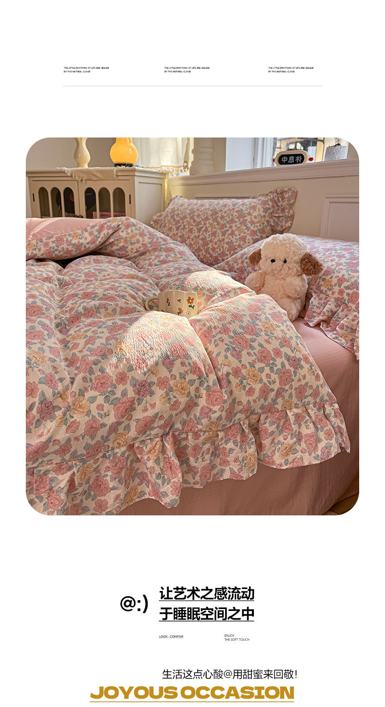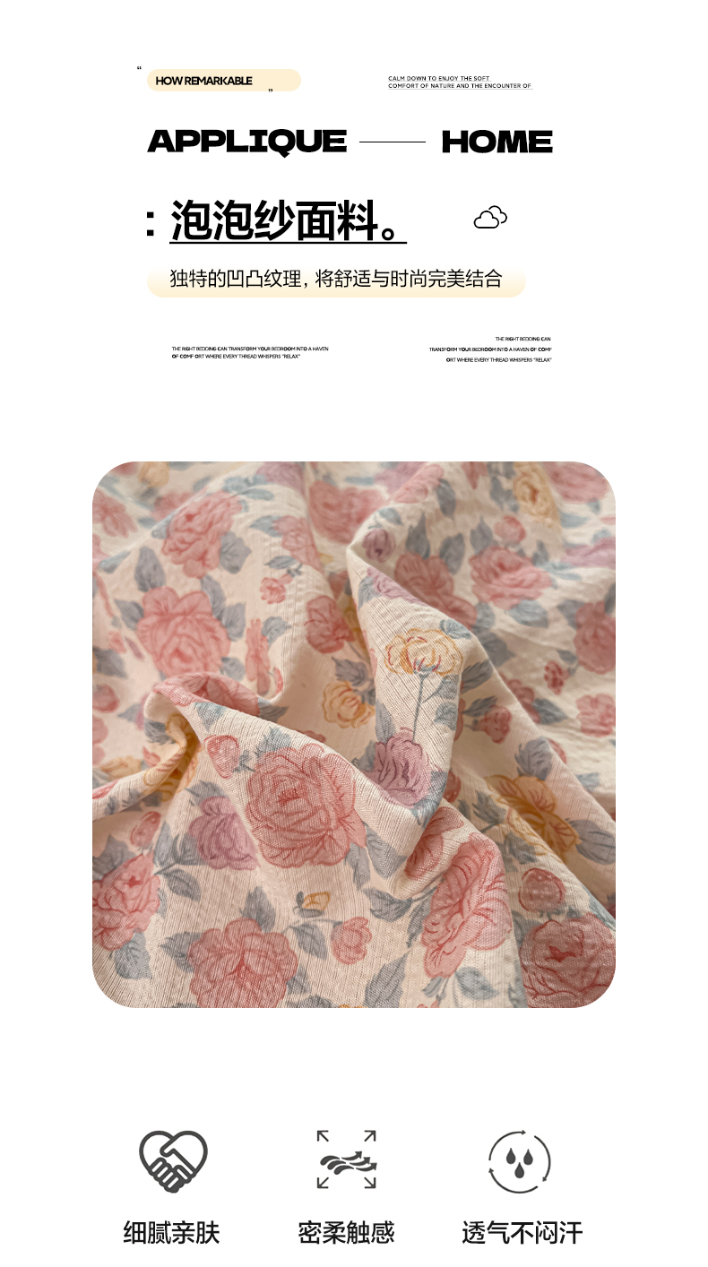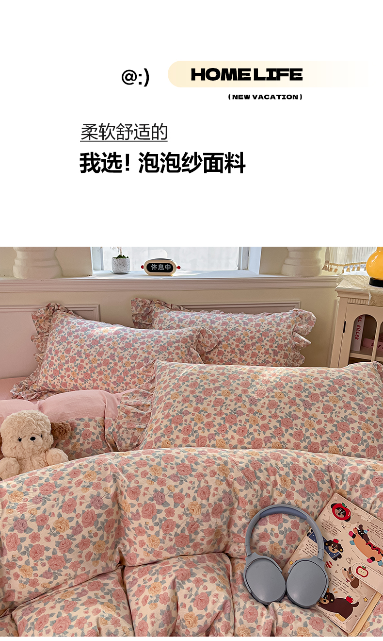 当前位置: 91家纺网 > 商品网购 > 床品套件 > 四件套 > 其它四件套 > 摩妮卡 2026新款泡泡纱韩版印花花边四件套 玫瑰花园