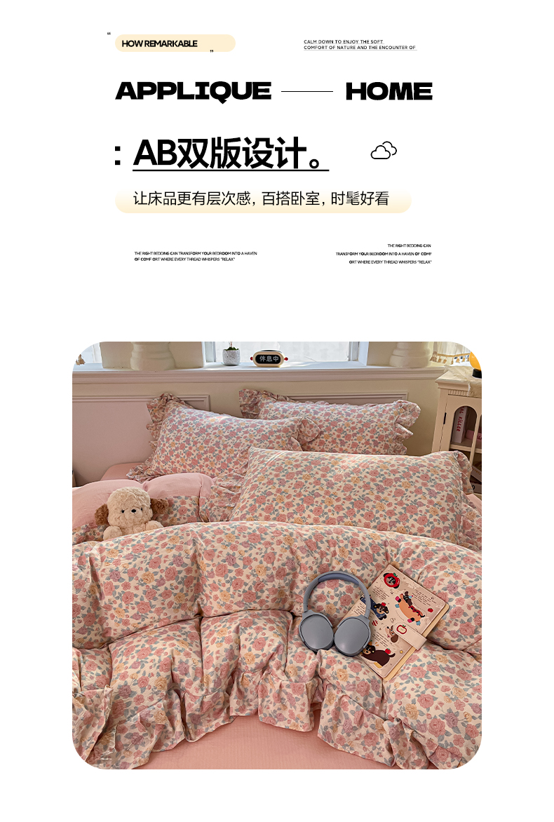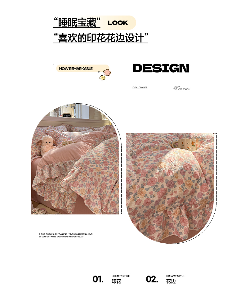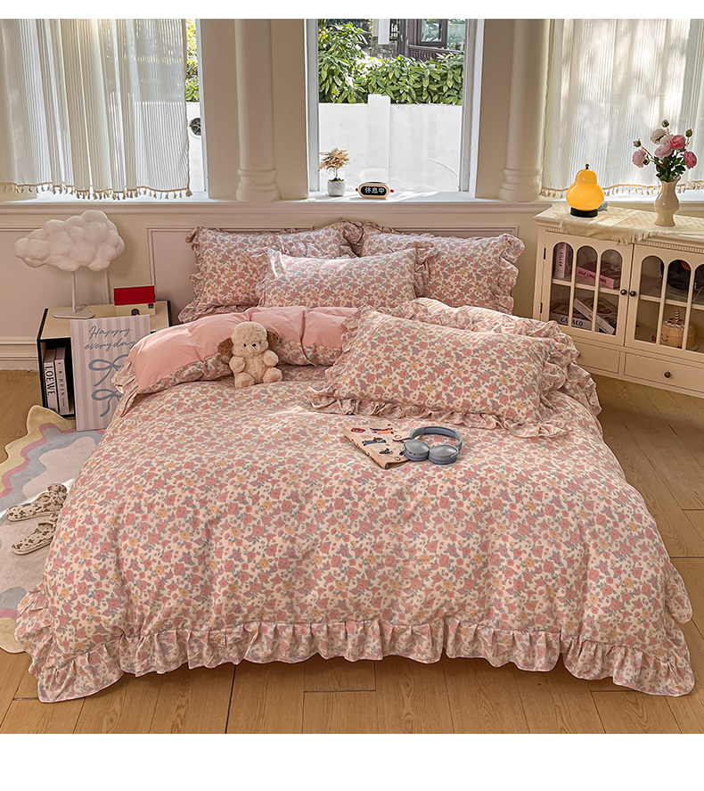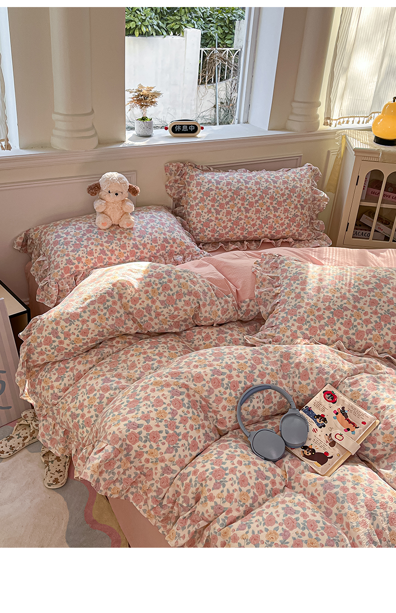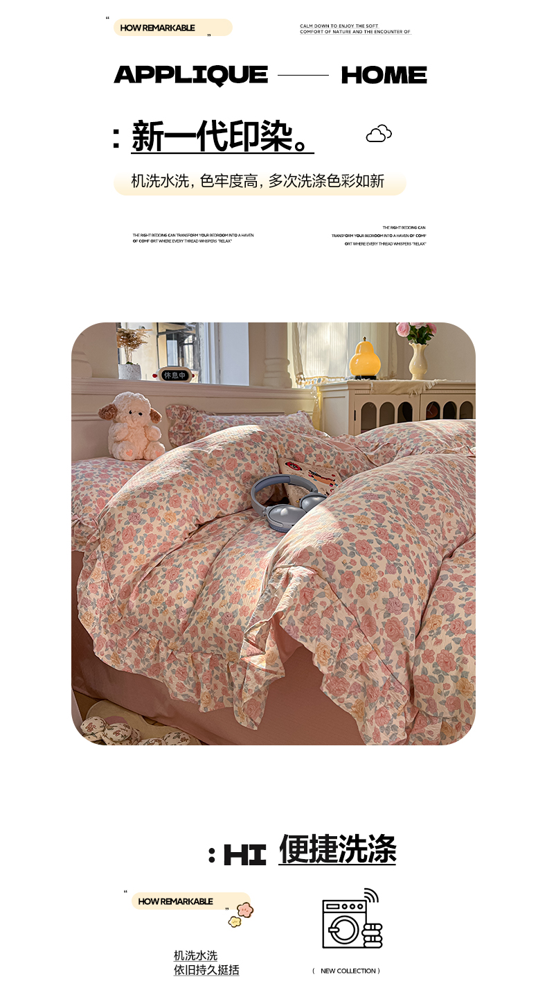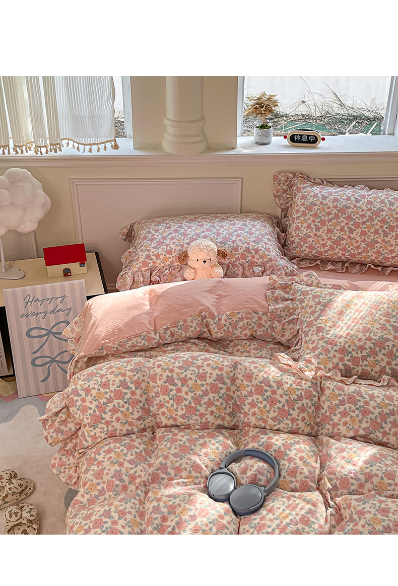 当前位置: 91家纺网 > 商品网购 > 床品套件 > 四件套 > 其它四件套 > 摩妮卡 2026新款泡泡纱韩版印花花边四件套 玫瑰花园