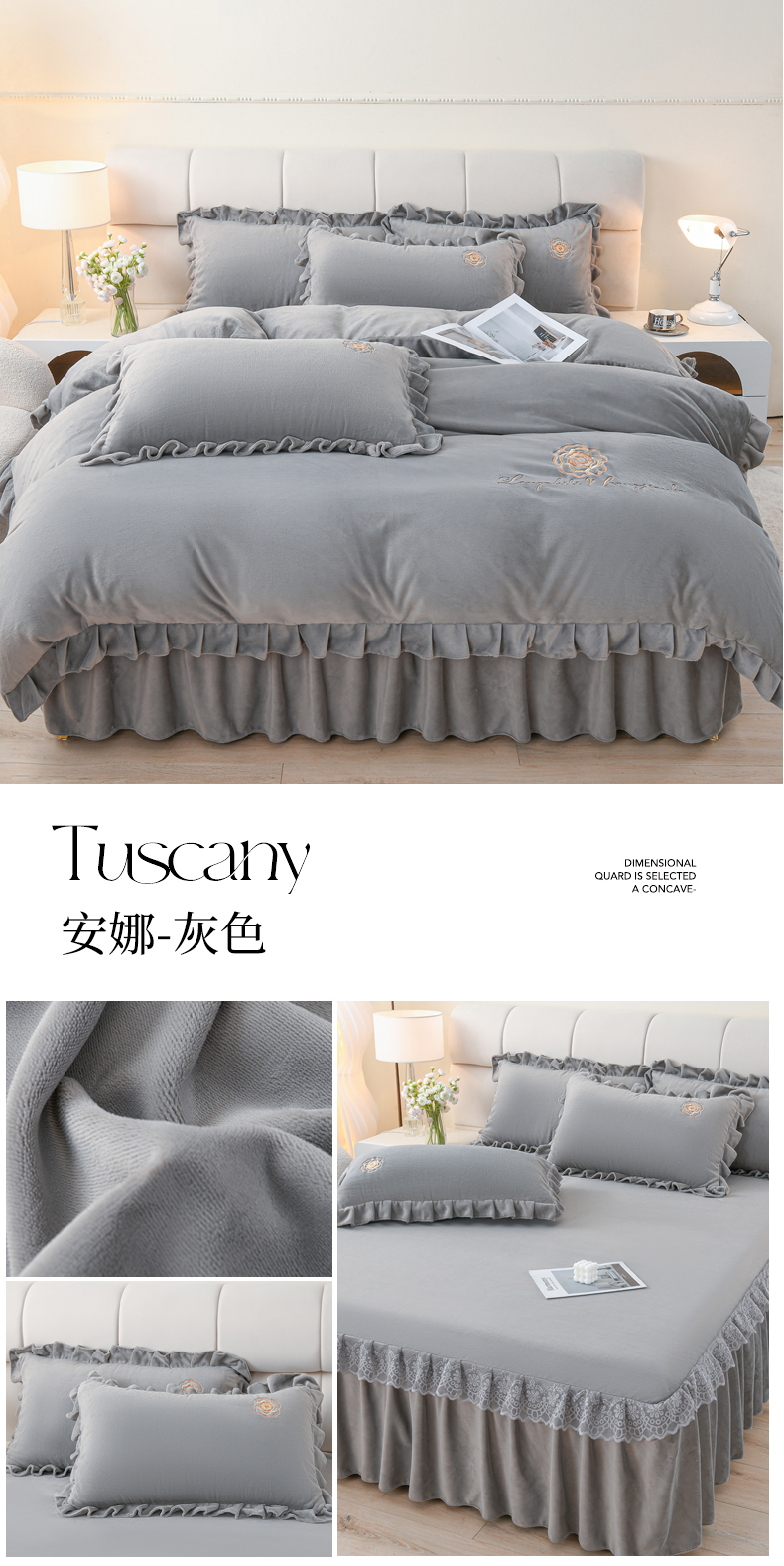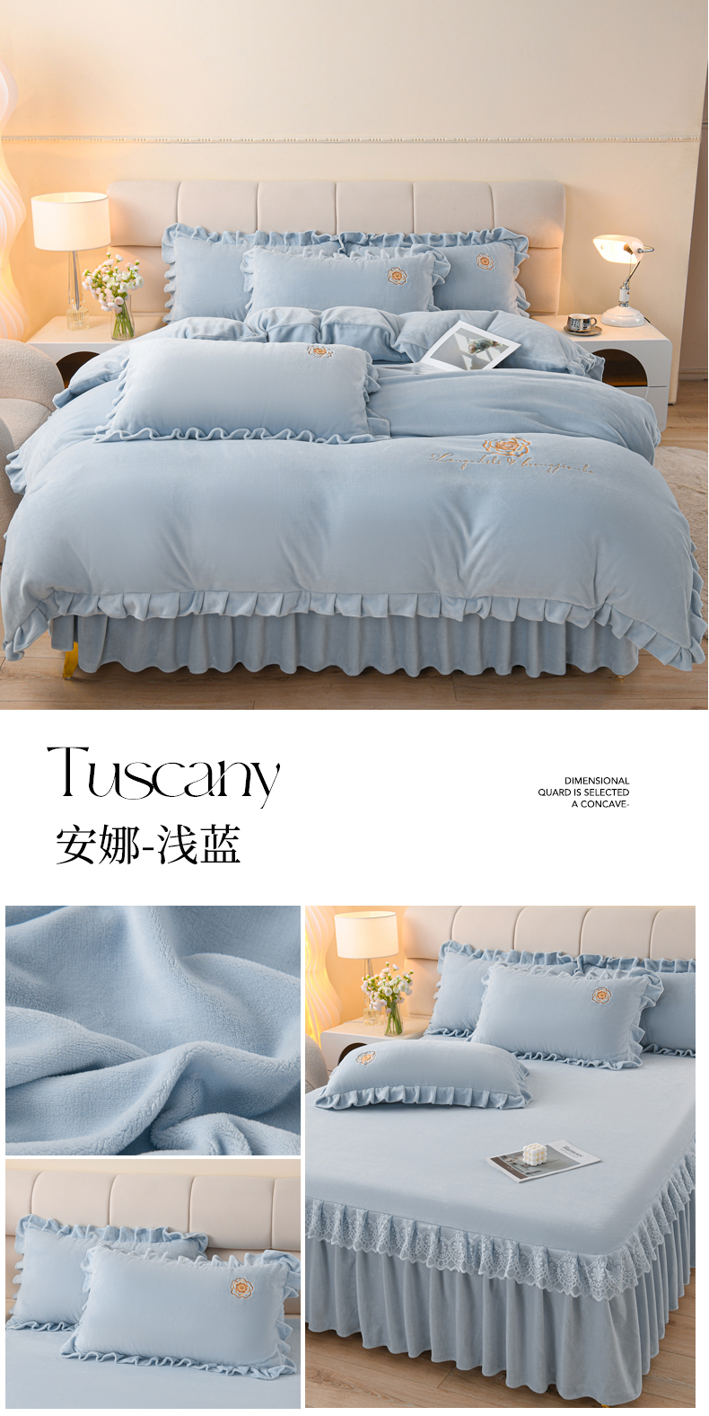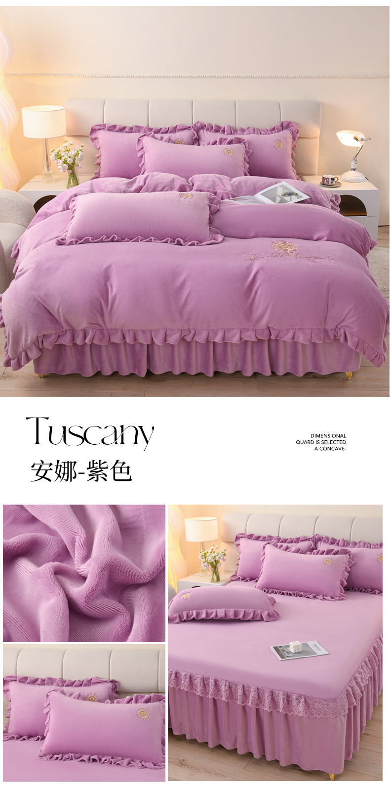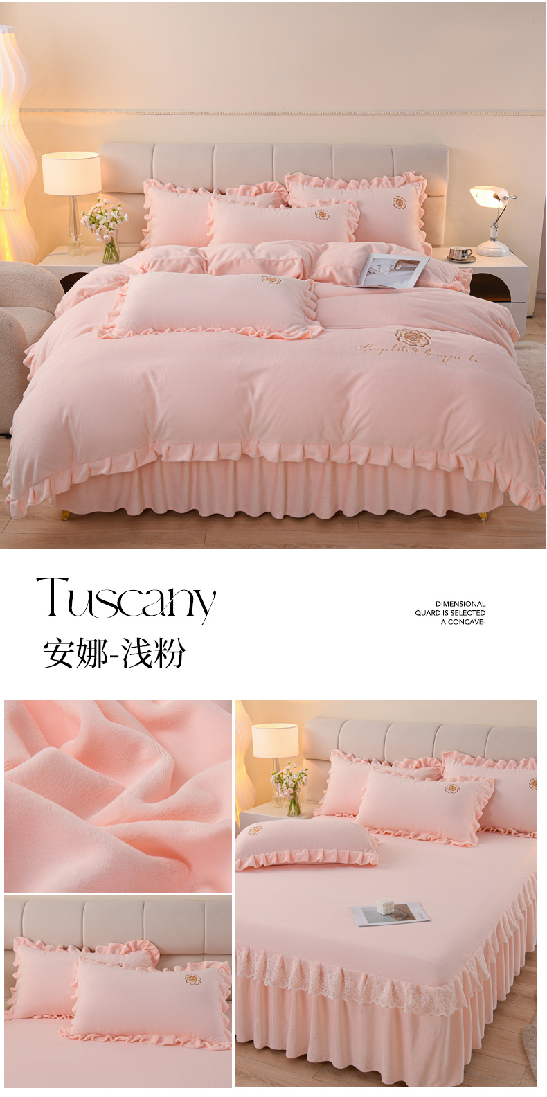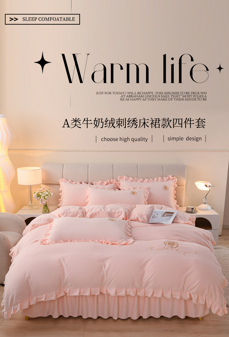 当前位置: 91家纺网 > 商品网购 > 床品套件 > 四件套 > 牛奶绒四件套 > 优家居工厂店 2026新款240克高克重牛奶绒韩版刺绣花牛奶绒床裙四件套床裙三件套 安娜-浅粉