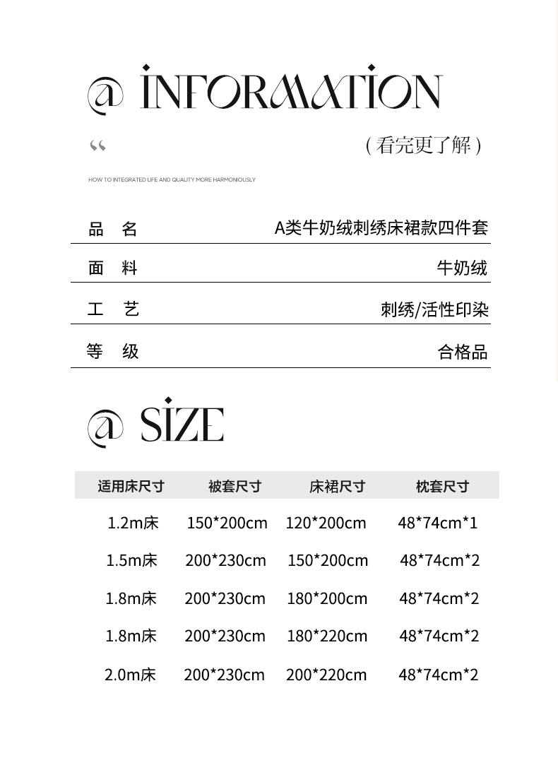 【床裙款】1.8x2.2四件套-被套200x230 | ¥135.00 |