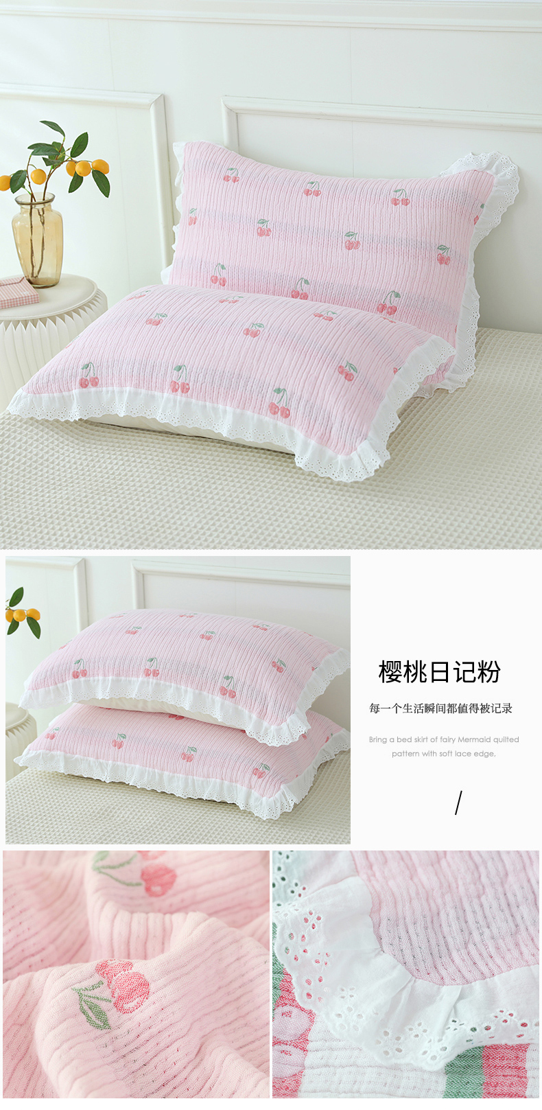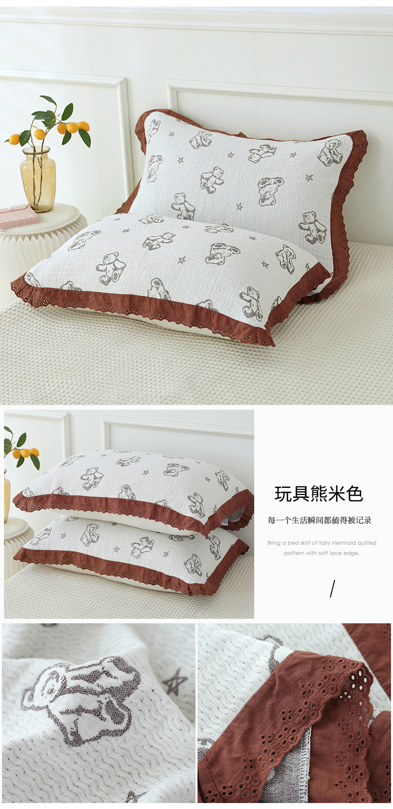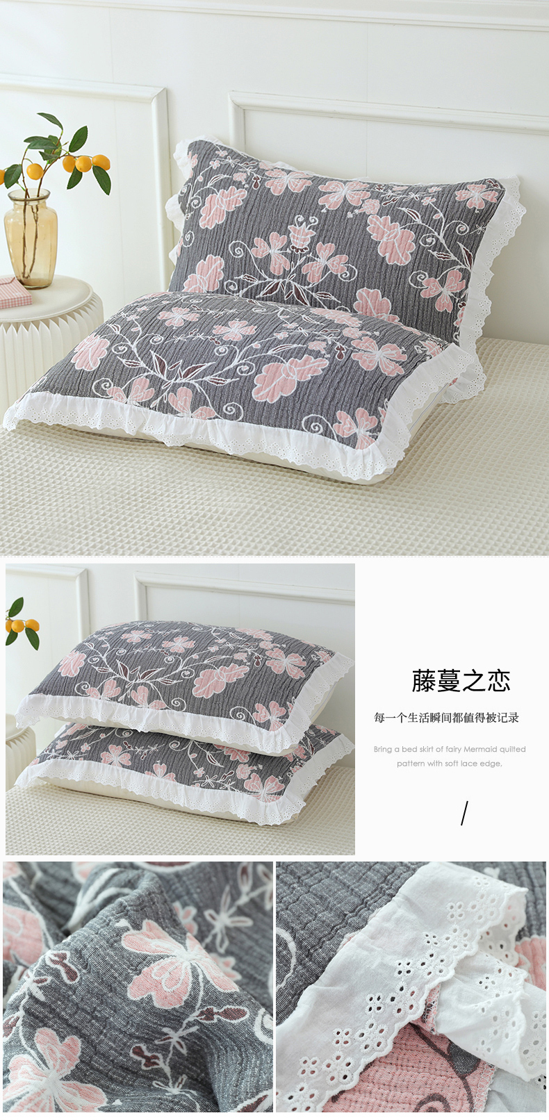 (总)朴尔家纺-毛巾被 2026新款韩式花边四层纱枕巾纯棉竹纤维加大成人纱布枕头巾