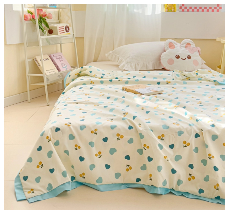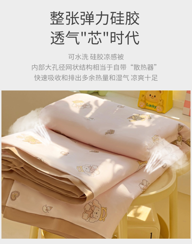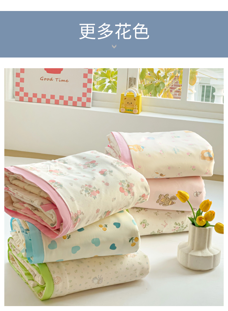 (总)十九色 2026新款液态硅胶奶嘴同源天丝棉飞边凉感夏被夏凉被空调被,小蓝心,小兔兔,草莓多多,花园里,田园趣事,小布偶