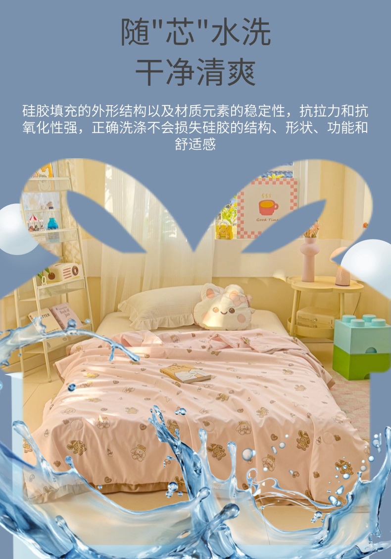 商品名称:十九色 2026新款液态硅胶奶嘴同源天丝棉飞边凉感夏被夏凉被空调被 小布偶