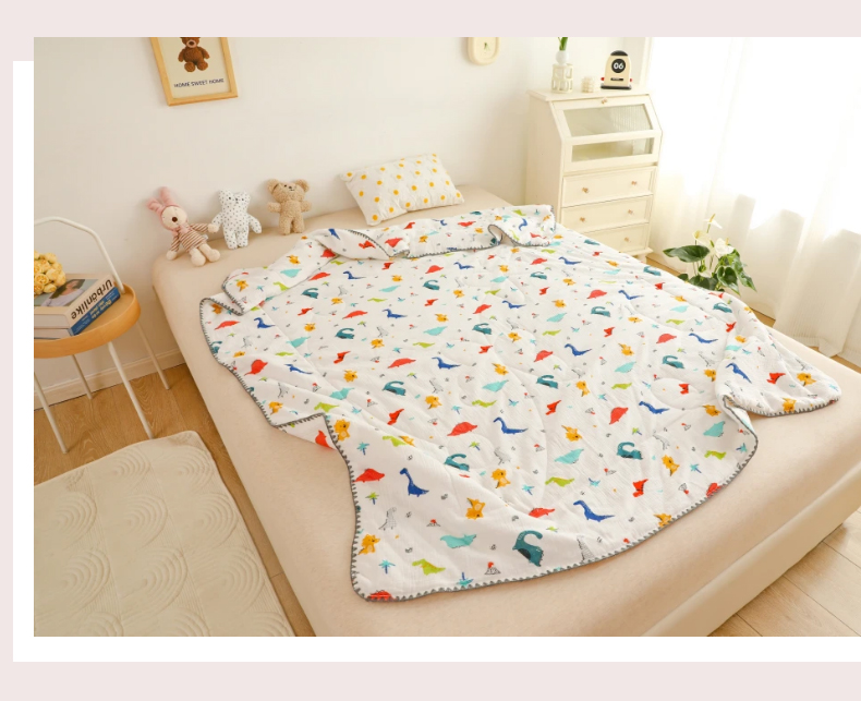 商品名称:十九色 2026新款婴儿纱皱布儿童贴身夏被被子被芯 五彩恐龙