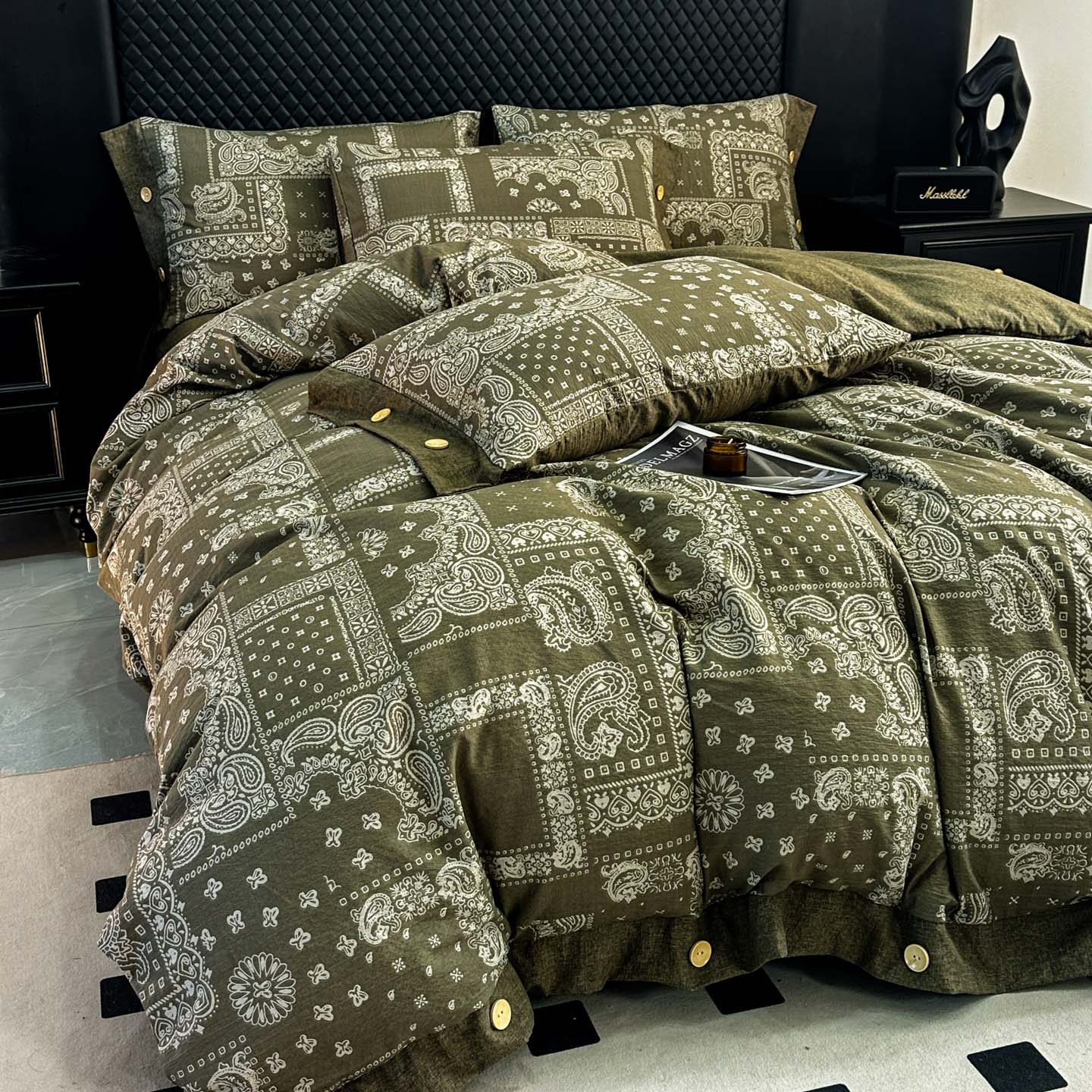 当前位置: 91家纺网 > 商品网购 > 床品套件 > 四件套 > 其它四件套 > 晚爱家纺(原晚安家居) 2026新款加厚双层纱原麻纽扣款四件套 复古绿格