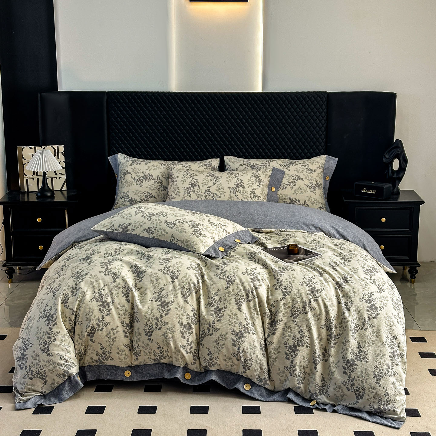 当前位置: 91家纺网 > 商品网购 > 床品套件 > 四件套 > 其它四件套 > 晚爱家纺(原晚安家居) 2026新款加厚双层纱原麻纽扣款四件套 叶影