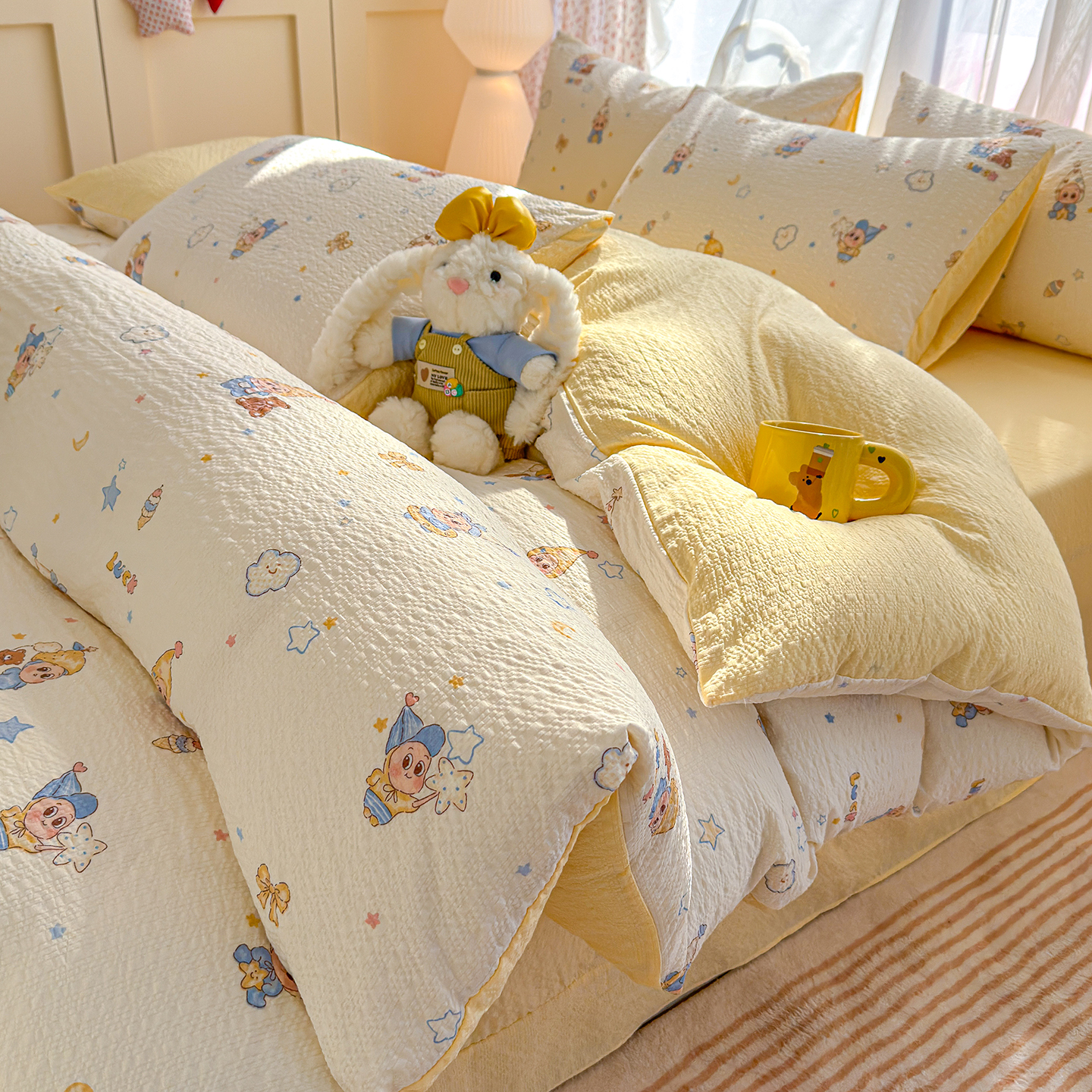 (总)竹合家纺 2026春夏新品高克重A类泡芙纱泡泡皱皱纱四件套,温莎粉,晚安宝贝,条纹腊肠狗,禾里,熊先生,西雅图,幽兰花谷,侏罗纪,花中小熊,复古结美,约定一粉,梅果小兔,星星仔,爱心点点,浅唱花语,爱心小熊,初见一蓝,马到成功,紫色花园,紫萱花开,豹纹KT猫,波西米亚蓝,赫本印象