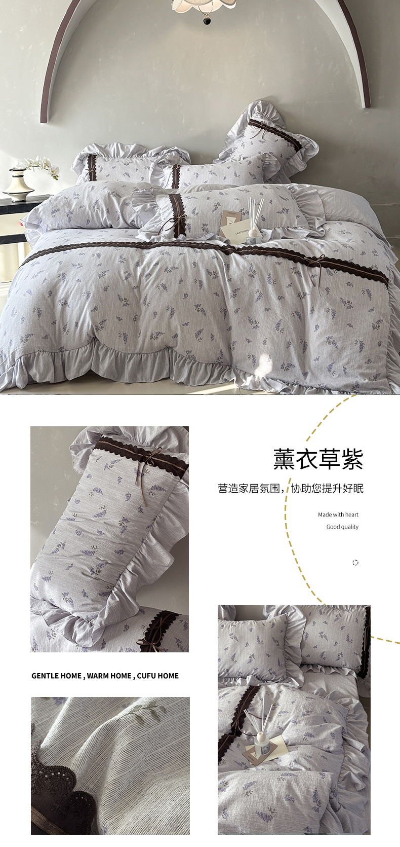 (总)迷尚家居 2026新款提花色织麻花边四件套,草莓粉,蝶恋花,费尔岛灰,好运结咖,红樱桃茶,佳人紫,可可蓝,素锦豆沙,素锦灰,素锦蓝,小兰花绿,星星狗绿,薰衣草紫,野餐,云溪粉,云溪蓝