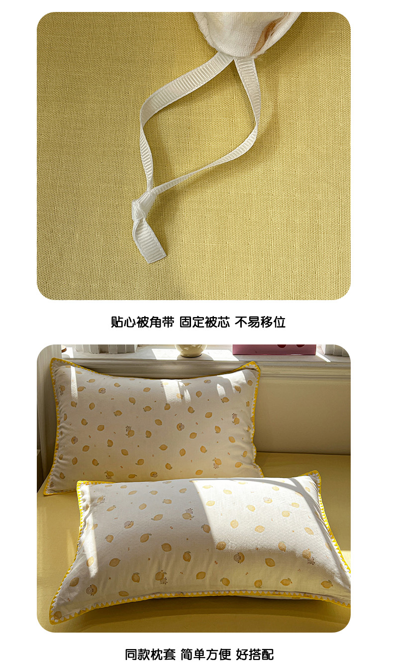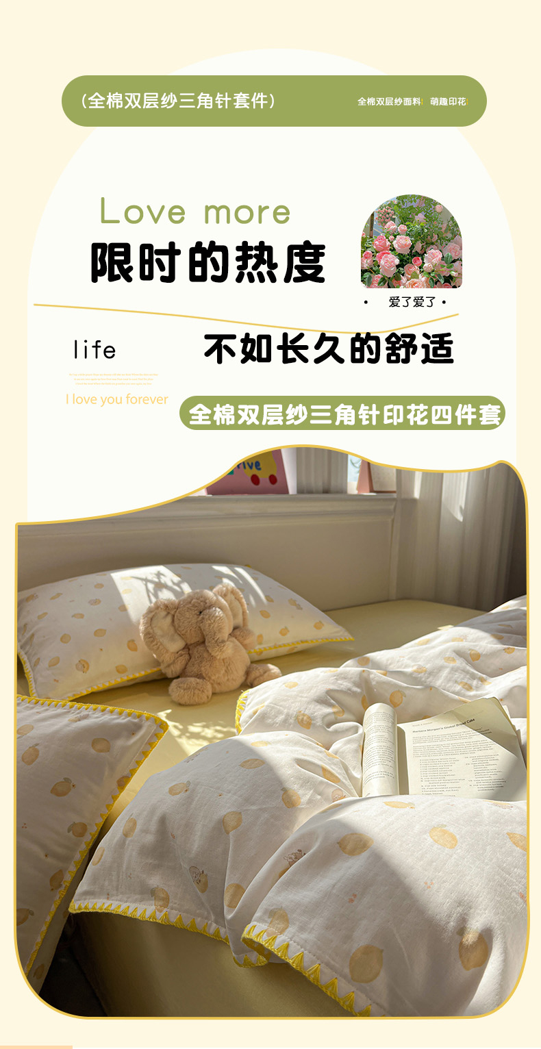 商品名称:忆生活家纺 2026新款A类全棉有氧双层纱贝壳边三角针四件套 檬檬羊