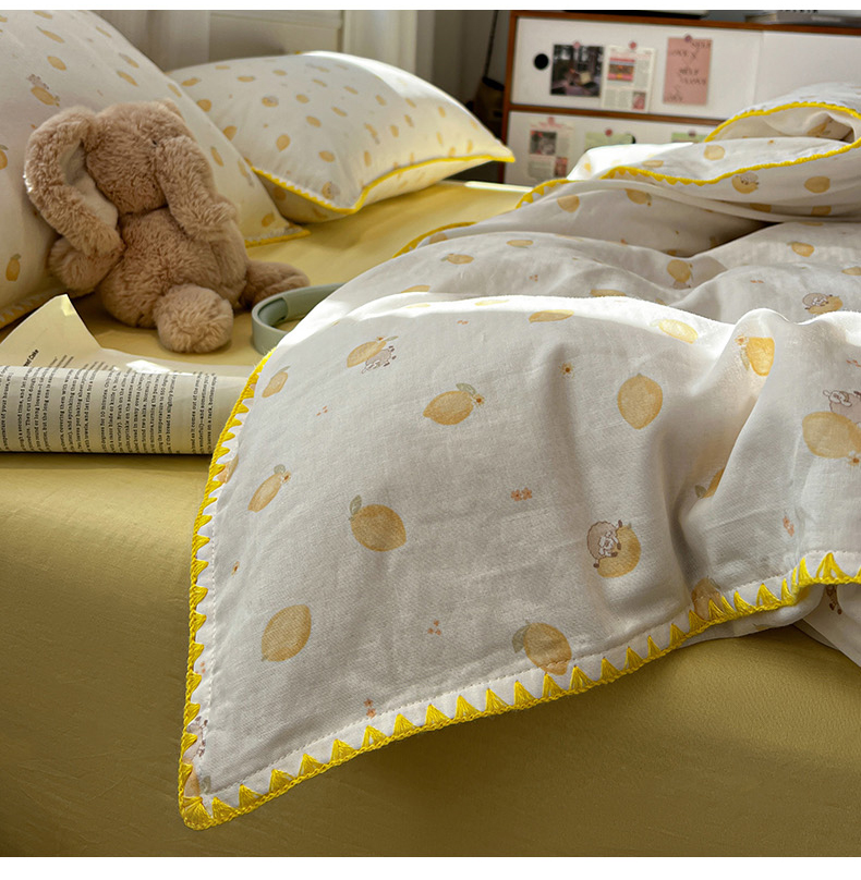 忆生活家纺 2026新款A类全棉有氧双层纱贝壳边三角针四件套 檬檬羊