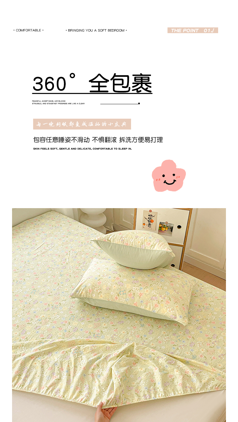 • 91家纺网 家纺一手货源 找家纺 立森 2026春夏新款云感皱皱纱泡芙纱床笠单枕套系列-床拍图 碎花萌宠,碎花萌宠