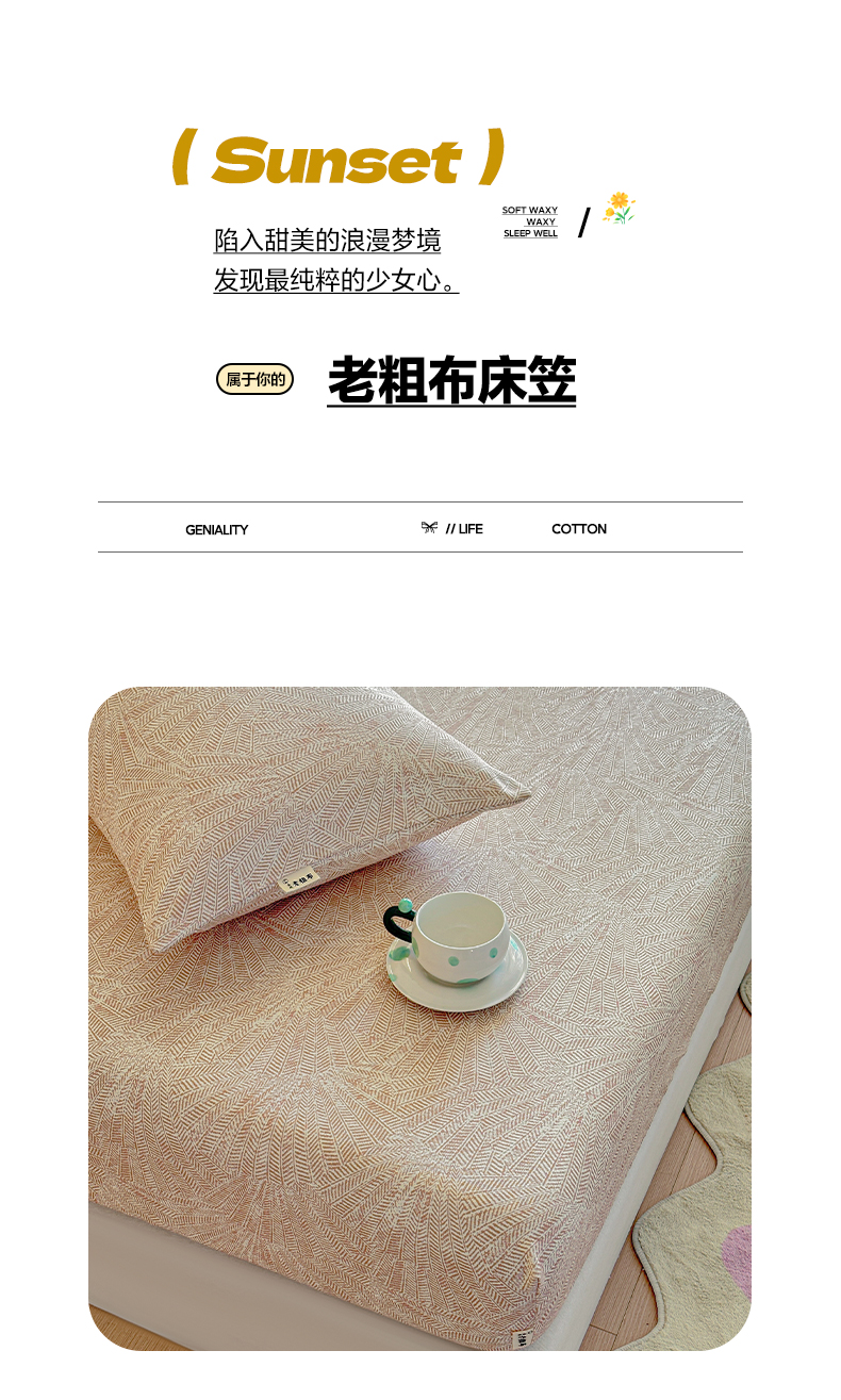 商品名称:莱登卡奴 2026新款A类100%全棉纯棉老粗布单床笠系列 云初
