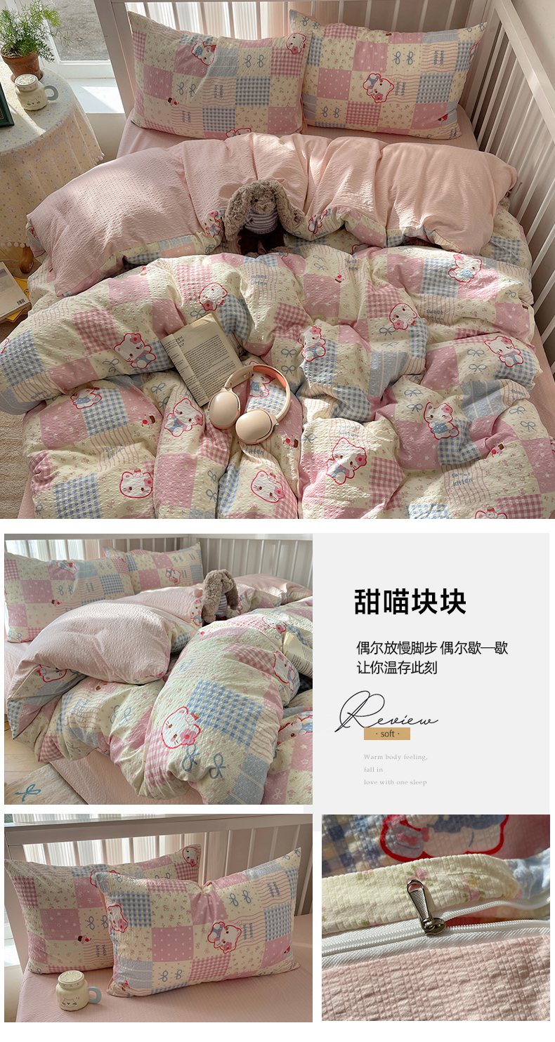 当前位置: 91家纺网 > 商品网购 > 床品套件 > 四件套 > 其它四件套 > 贝扬思家纺 2026新款高品质A类泡芙纱-可爱猫猫系列普通款四件套(110g) 躲猫猫