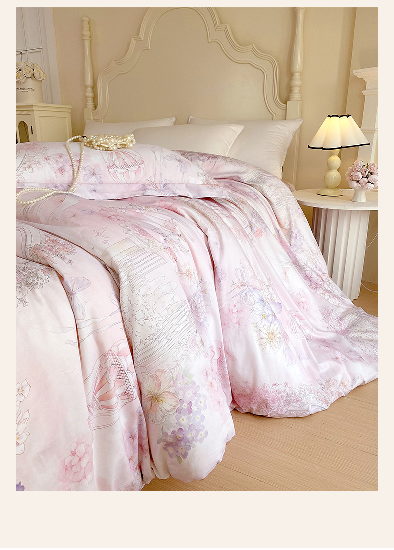 • 91家纺网 家纺一手货源 找家纺 (总)宝齐莱家纺 2026新款全棉纯棉活性印花四件套,公主乐园,花姿漫,蓝色梦幻,浪漫花季,梦幻城堡,云裳仙子,花开锦绣,花知晓,玫瑰的故事,梦想家,时光记忆,忆江南,月光森林