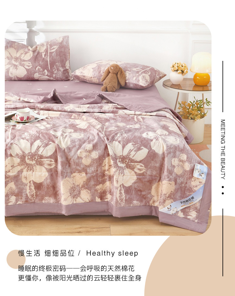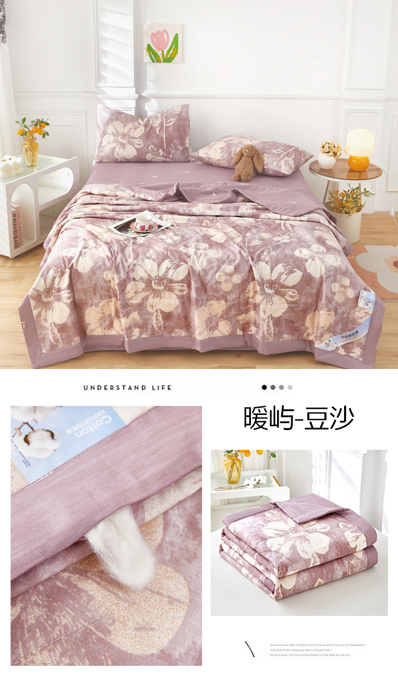 • 91家纺网 家纺一手货源 找家纺 黛妮雅 2026新款里外全棉印花棉花被纯棉夏被夏凉被空调被 夏被四件套暖屿-豆沙