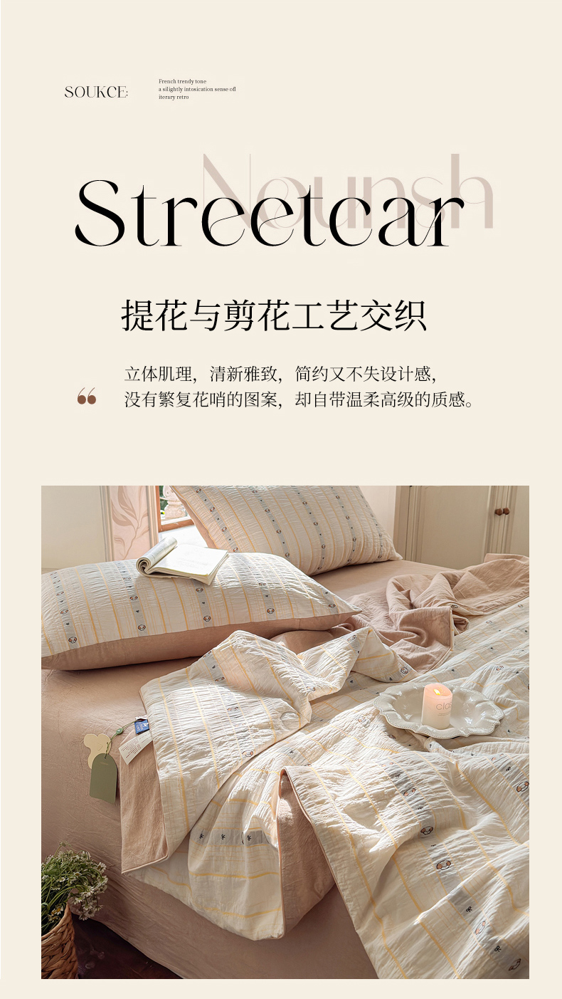 当前位置: 91家纺网 > 商品网购 > 床品套件 > 四件套 > 夏被四件套 > 木楌家居 2026新款全棉提花剪花夏被四件套 楚伊