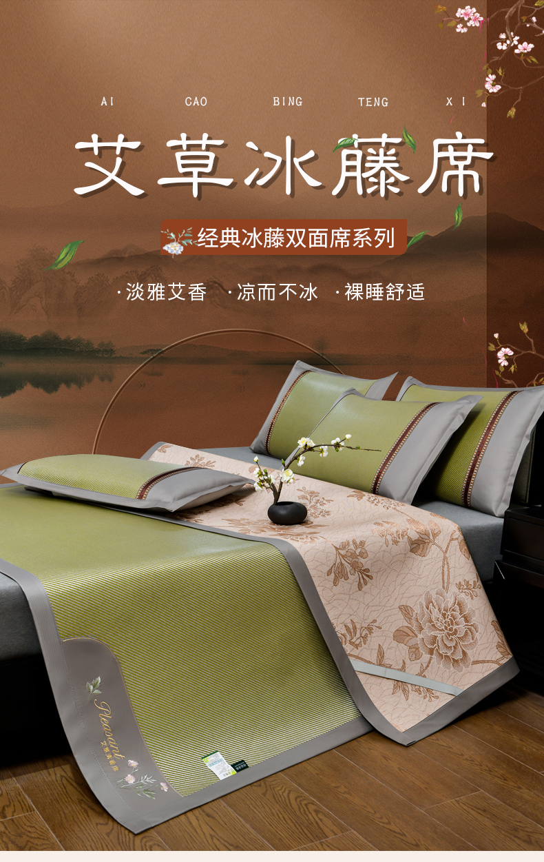商品名称:小牛席业 2026新款艾草清香冰藤-双面席系列 艾草冰藤席-青柠