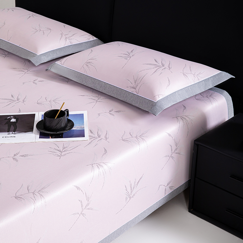 (总)2023新款超精密冰丝席-小斜纹系列-床笠款藤席凉席竹席,粉色,蓝色,绿色,银灰