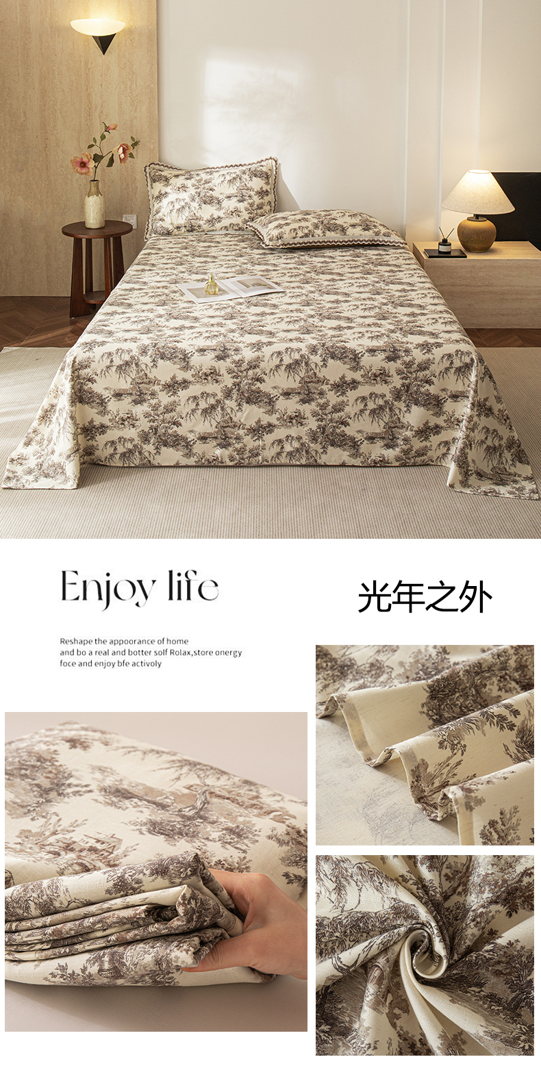 商品名称:优米家纺 2026新款棉麻印花床单单件床单单品 蔓叶森语