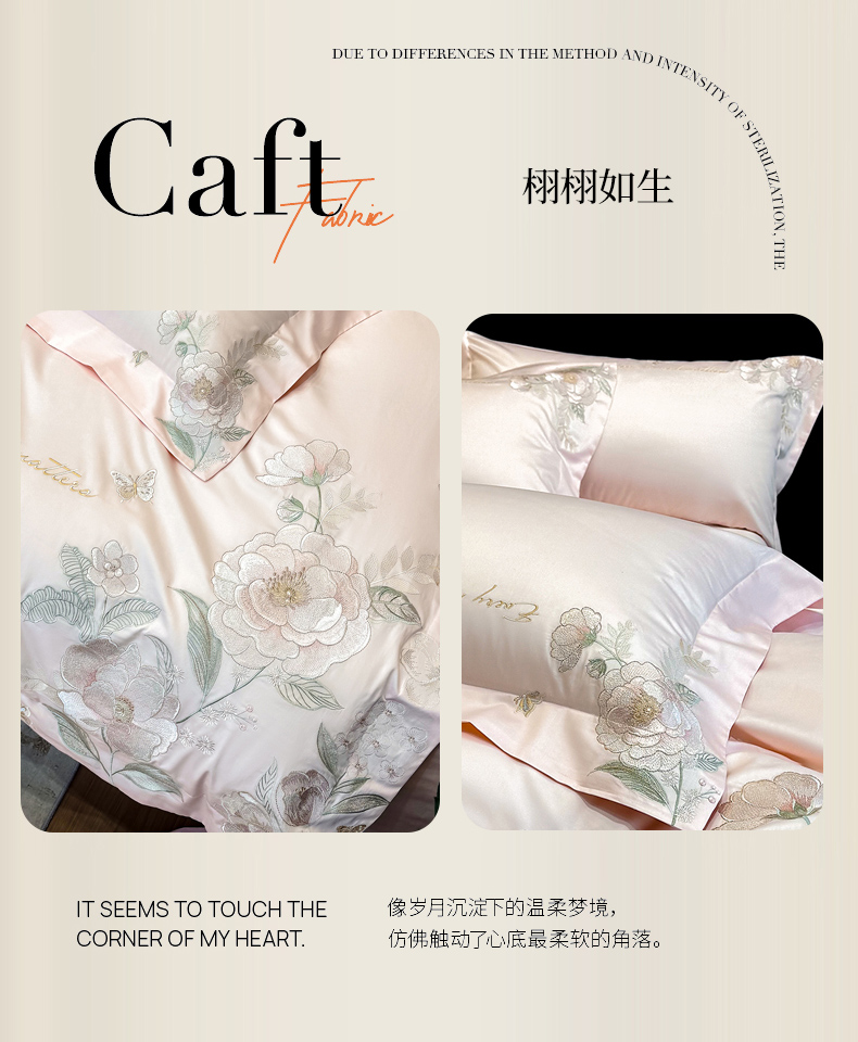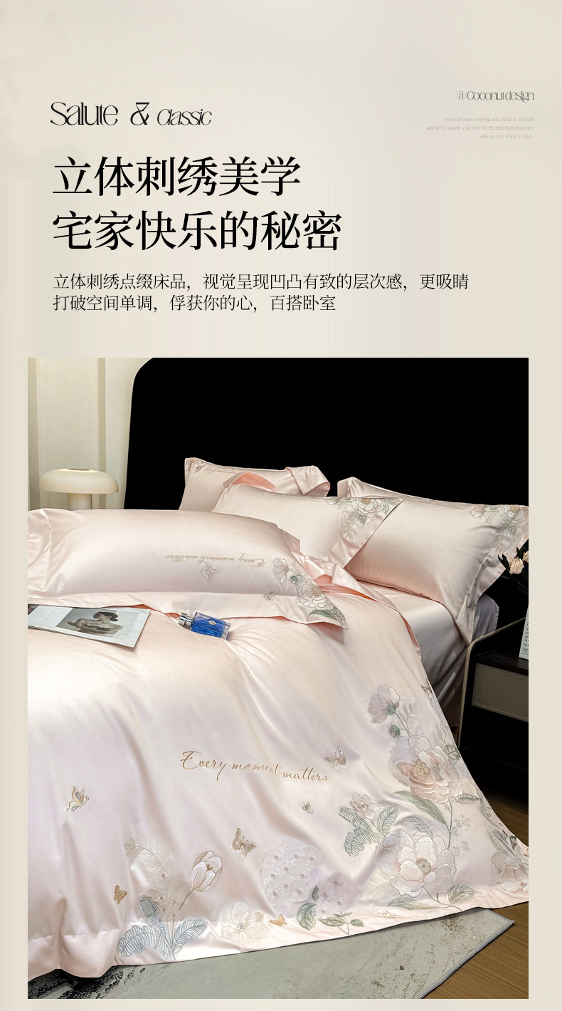 (总)星蕴家纺 2026新款50贡缎长绒棉纯棉绣花四件套-花瑾,花瑾-邂逅粉,花瑾-晴山蓝,花瑾-梦幻紫,花瑾-清新绿