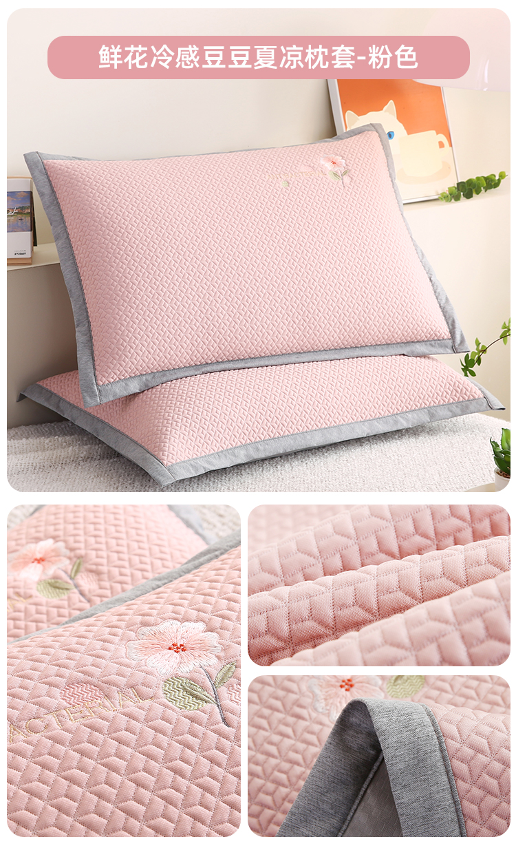 (总)小牛席业 2026新款鲜花刺绣凉感冰丝枕套单枕套枕套单件,鲜花凉感冰丝枕套-粉色,鲜花凉感冰丝枕套-灰色,鲜花凉感冰丝枕套-蓝色,鲜花凉感冰丝枕套-绿色,组合图 仅供参考