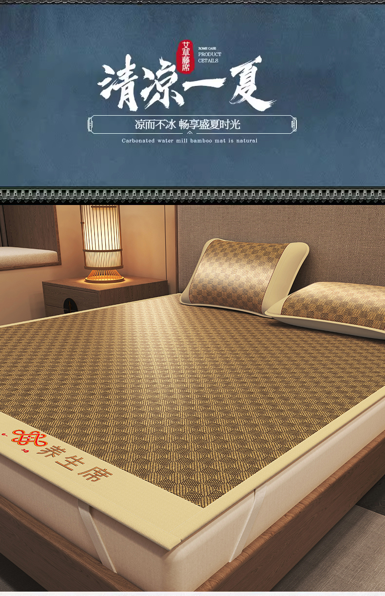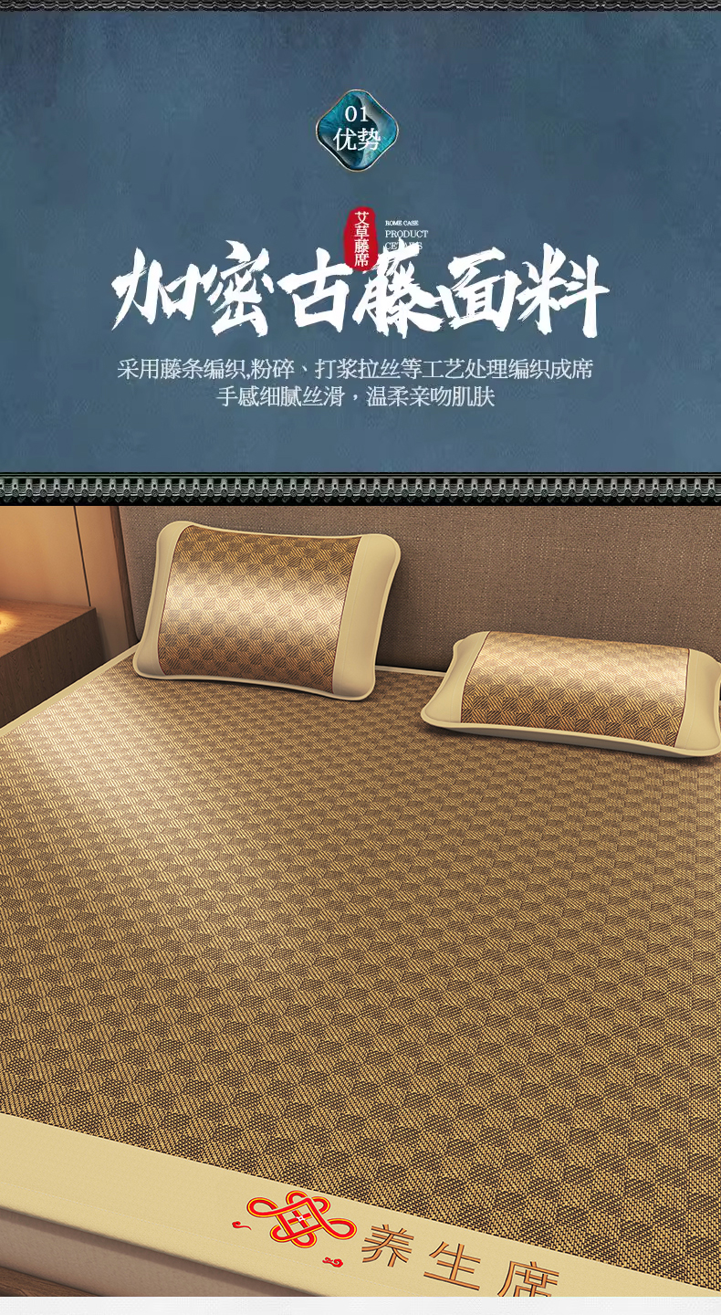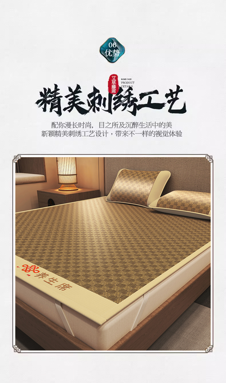 商品名称:小桃姐家纺 2025新款舒适艾草刺绣藤席养身席单面席中国风凉席席子 吉祥结-罗马格