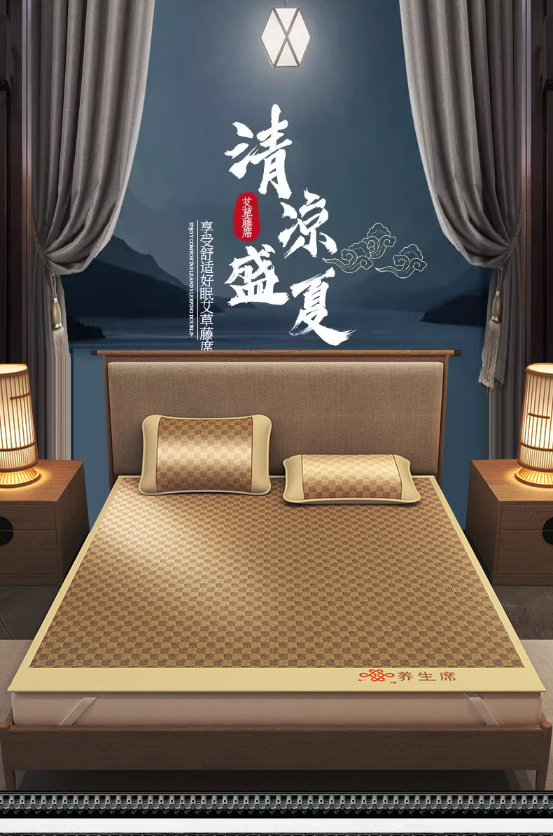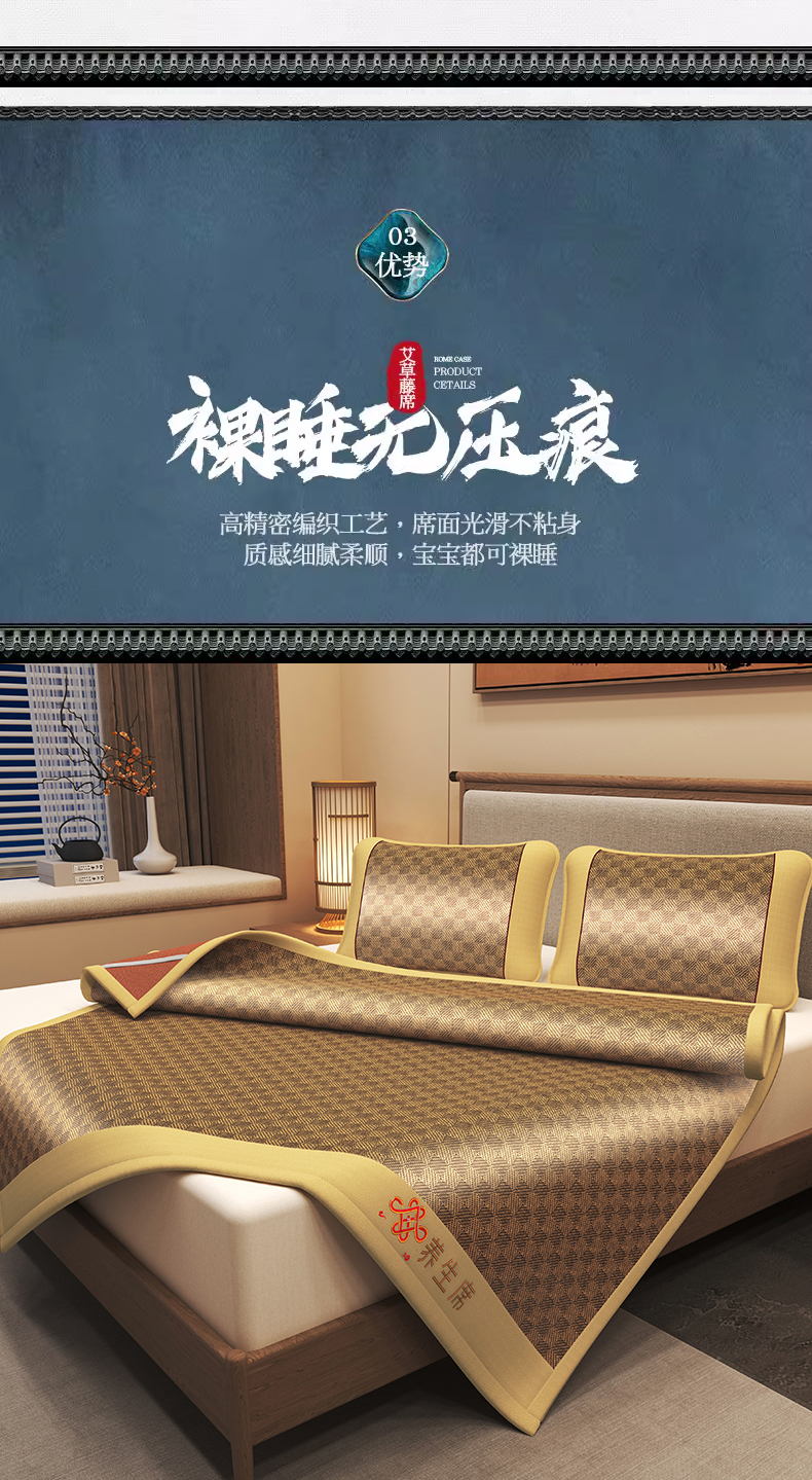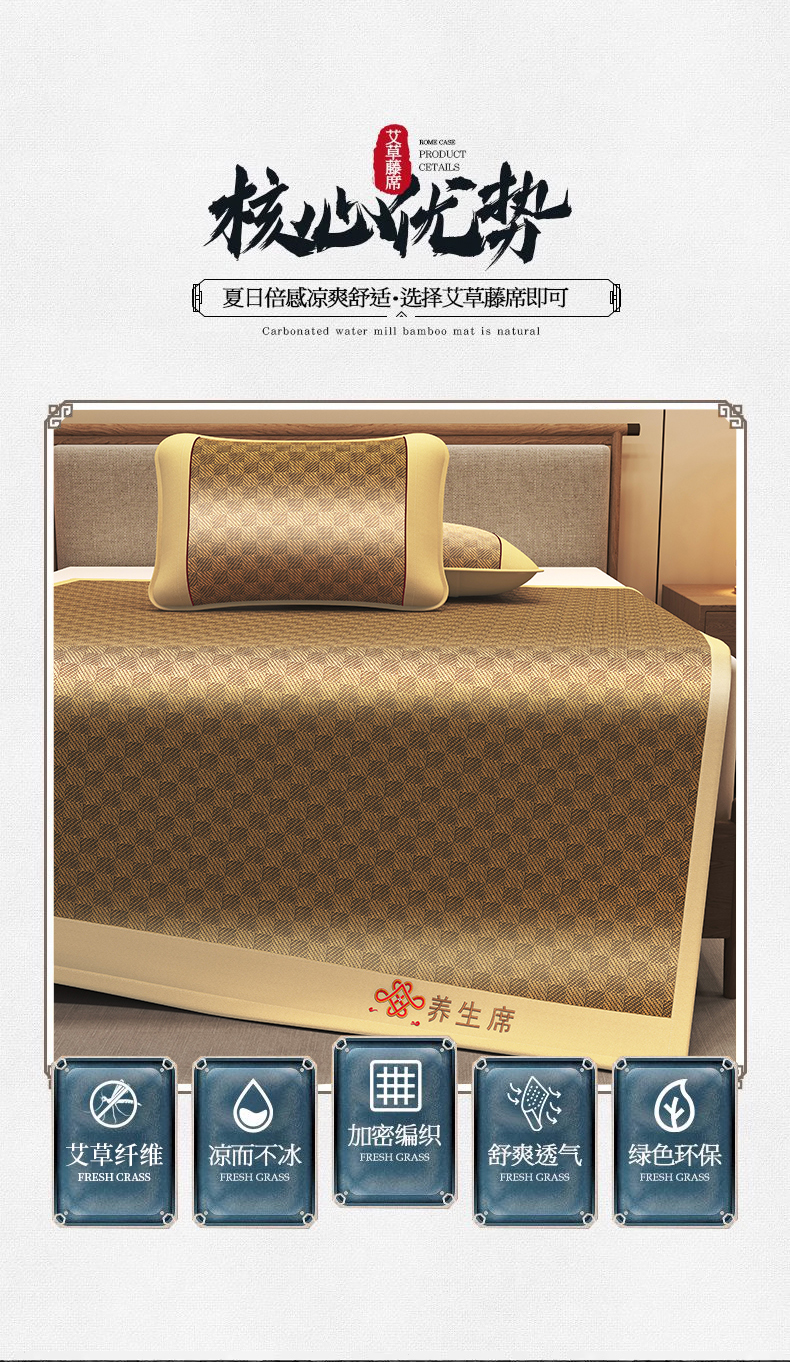 商品名称:小桃姐家纺 2025新款舒适艾草刺绣藤席养身席单面席中国风凉席席子 吉祥结-罗马格