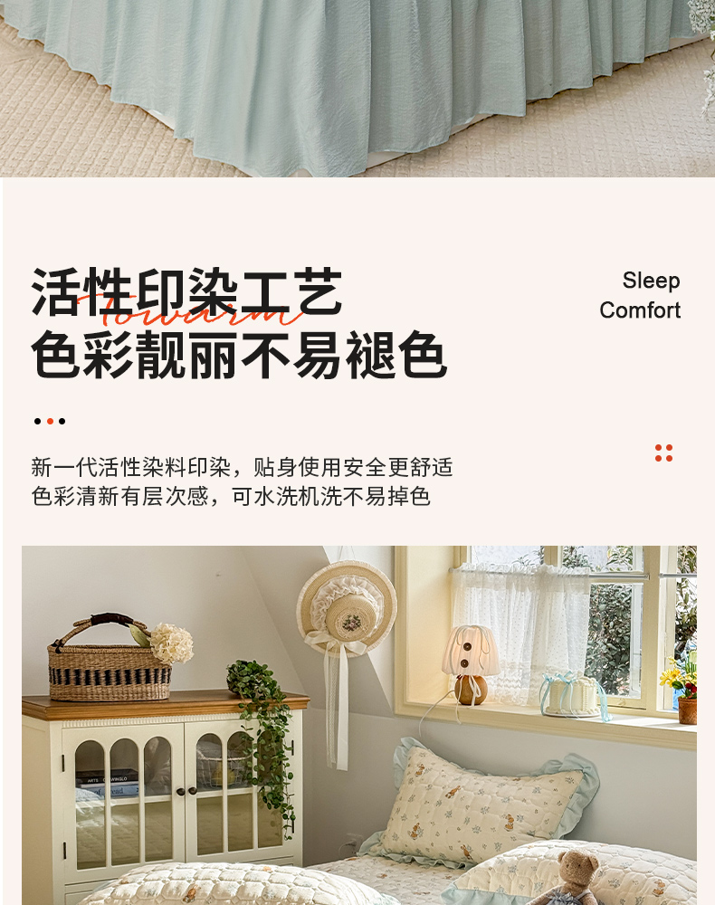 (总)禧缘家纺(原梦想家) 2026新款小清新皱皱纱木棉床裙式床笠印花三件套,彩虹,蝶梦,花田,沐春,南瓜,泡芙,甜筒,童话,兔兔,雾迟,星星,月光
