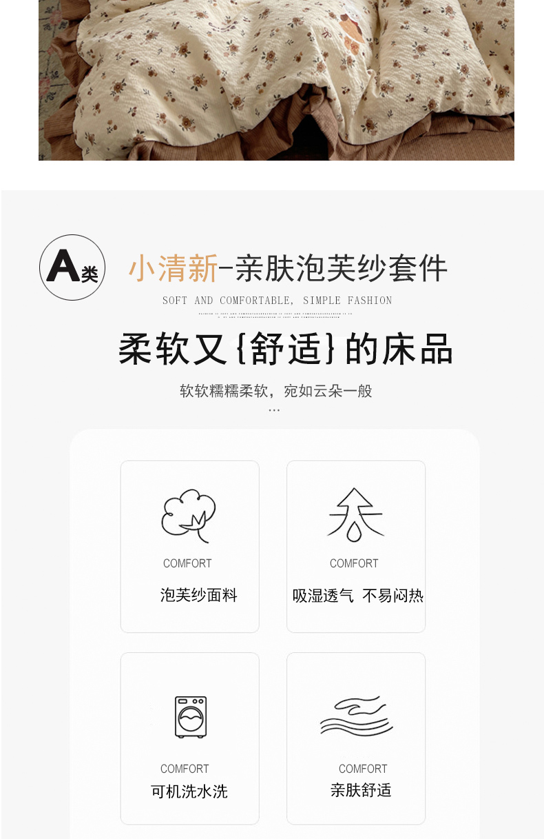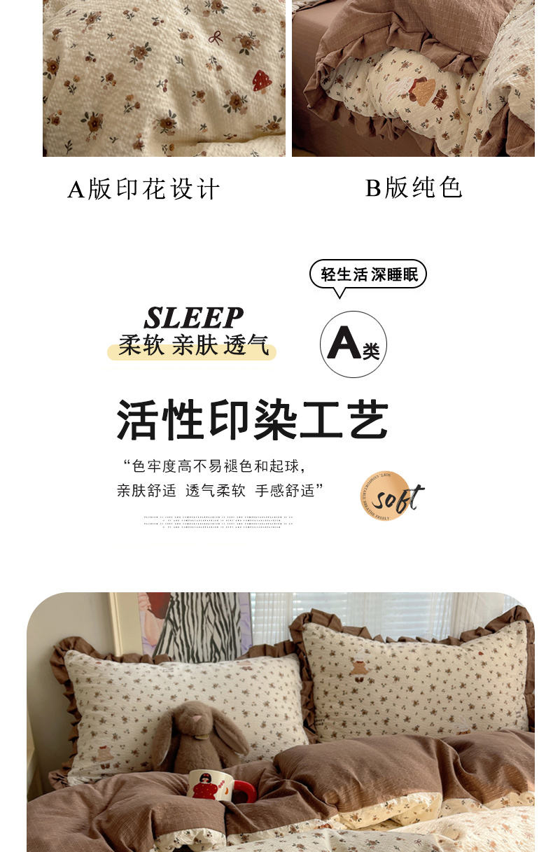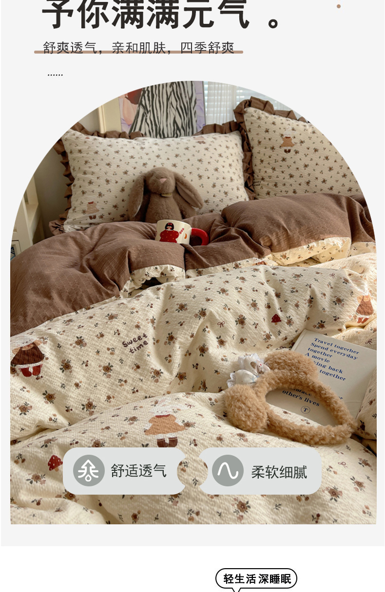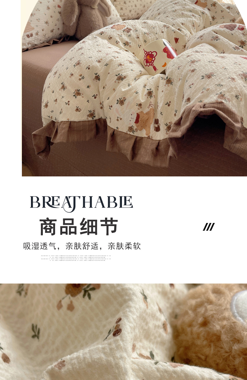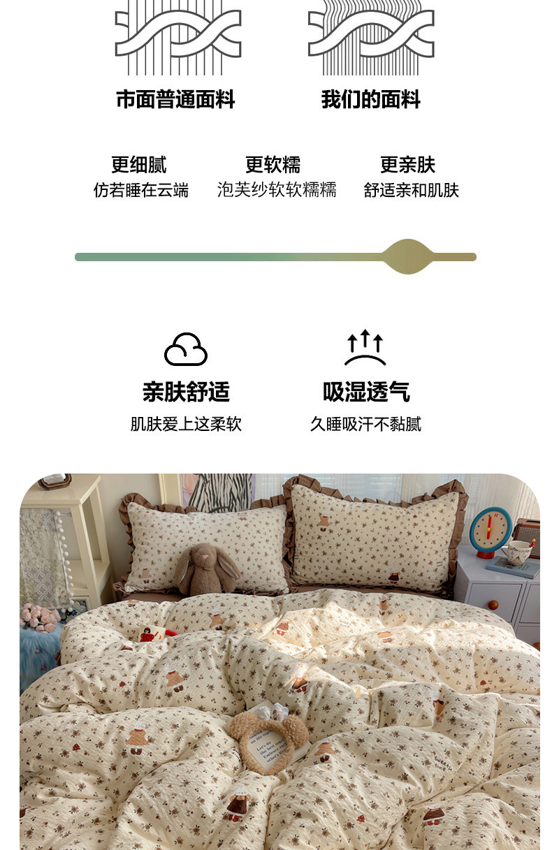 商品名称:迪梦姿家纺 2026新款高克重泡芙纱泡泡纱床单款四件套系列 田园兔