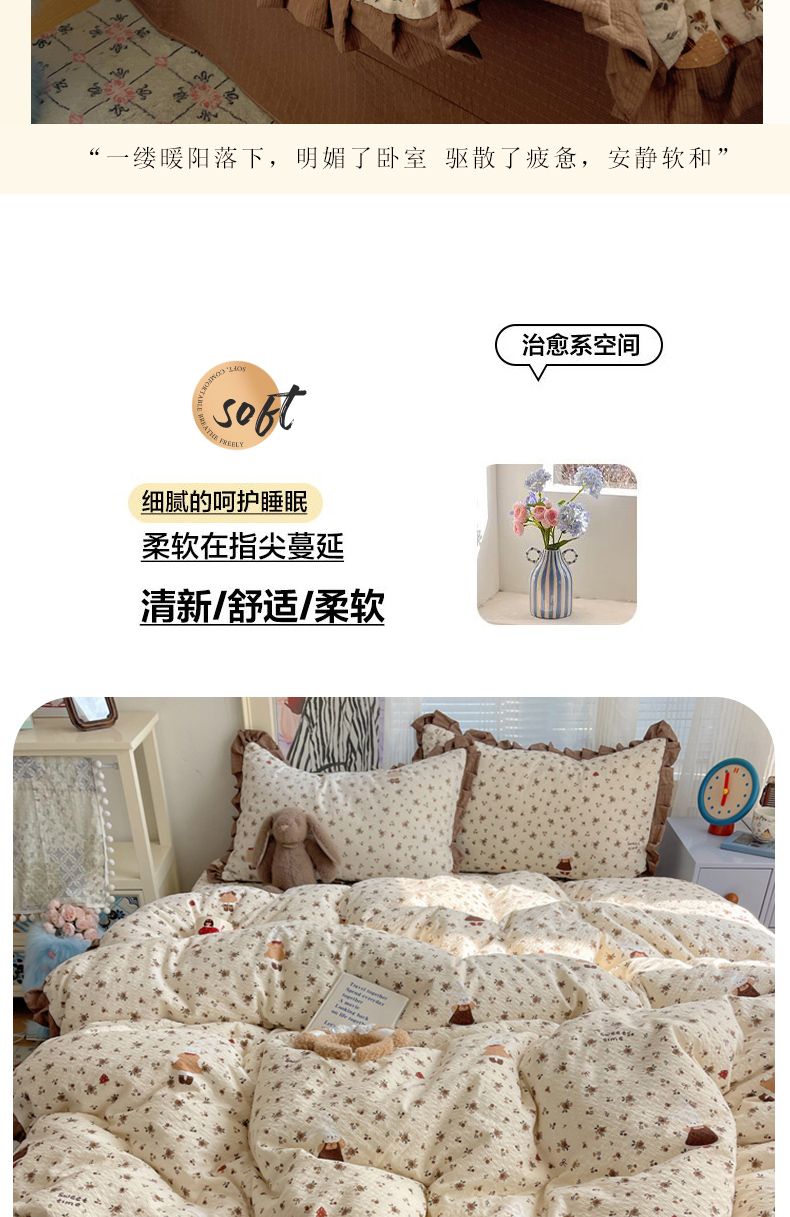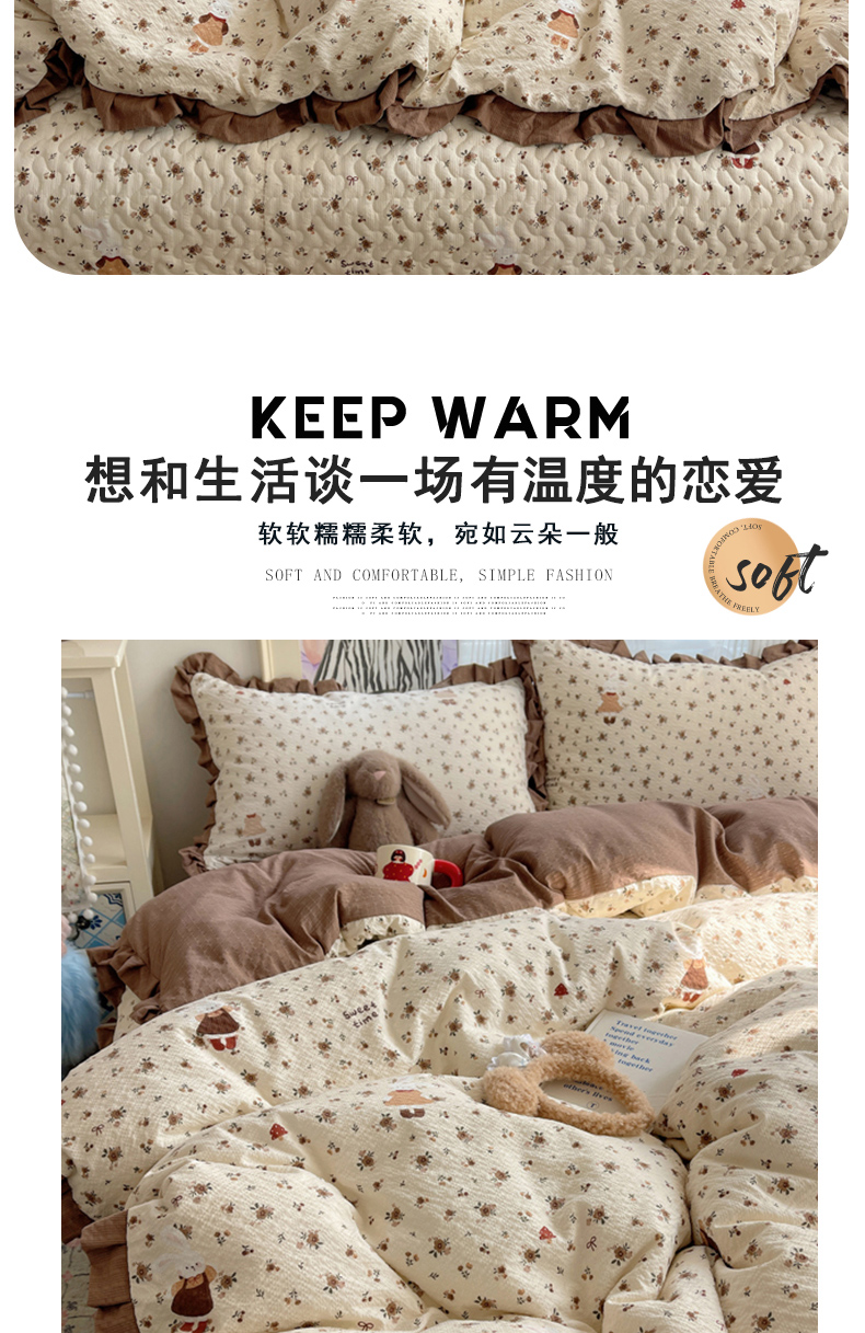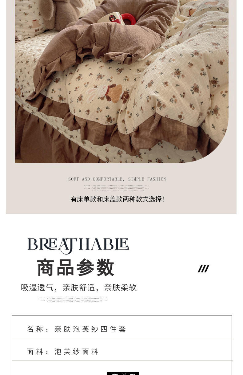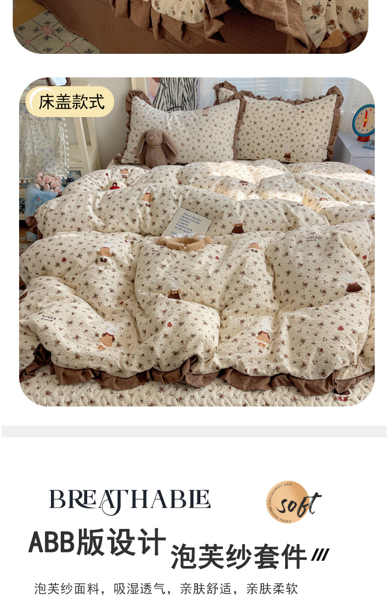 (总)迪梦姿家纺 2026新款高克重泡芙纱泡泡纱床盖款四件套系列,紫雾花蝶集,春日甜桃心米,纯宅熊,躲猫猫,花野兔眠,灰樱桃,旧街星星,猫咪集粉,莓系花伐,描线小猫咖,木马小花团,浅沙花影黄,浅沙花影蓝,田园兔,甜喵块块,甜心咖絮,甜心木马卷,兔仔花田,小兔裙边,星野蝴蝶结,悦悦小兔,只闻花香