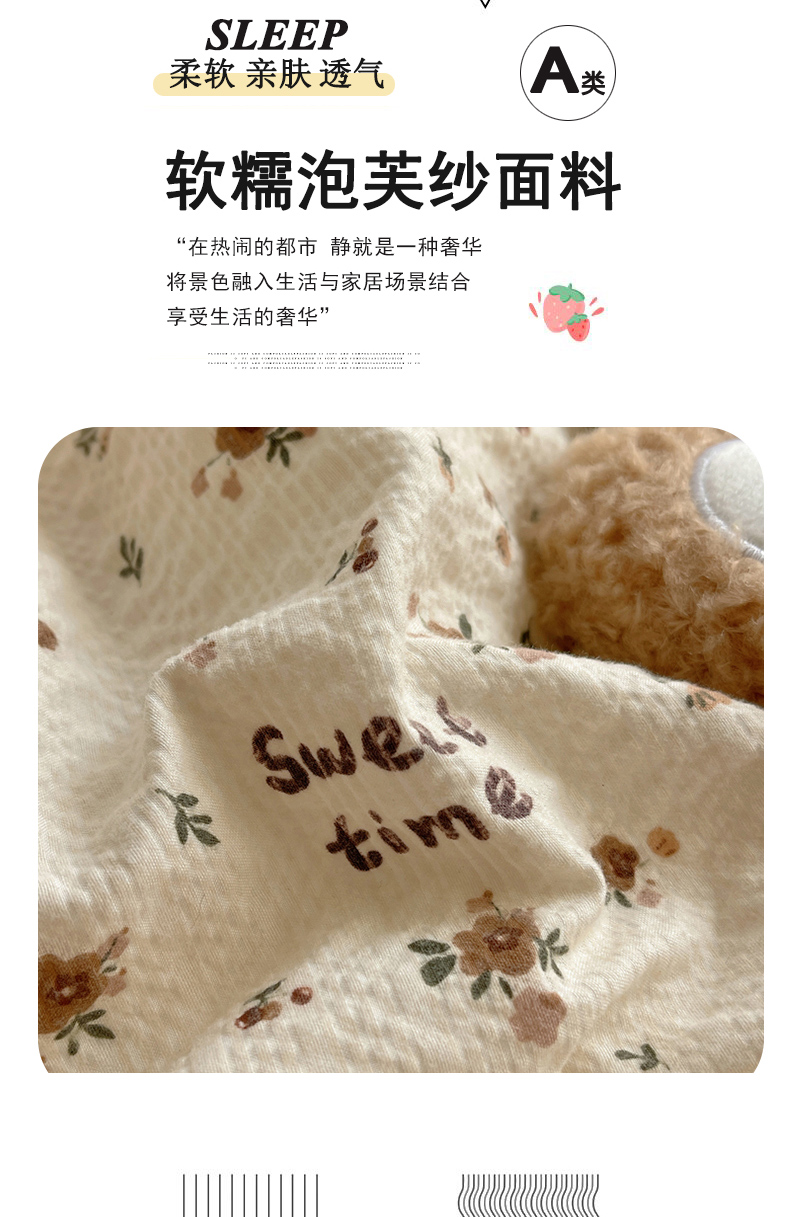 (总)迪梦姿家纺 2026新款高克重泡芙纱泡泡纱床单款四件套系列,兔仔花田,春日甜桃心米,纯宅熊,躲猫猫,花野兔眠,灰樱桃,旧街星星,猫咪集粉,莓系花伐,描线小猫咖,木马小花团,浅沙花影黄,浅沙花影蓝,田园兔,甜喵块块,甜心咖絮,甜心木马卷,小兔裙边,星野蝴蝶结,悦悦小兔,只闻花香,紫雾花蝶集