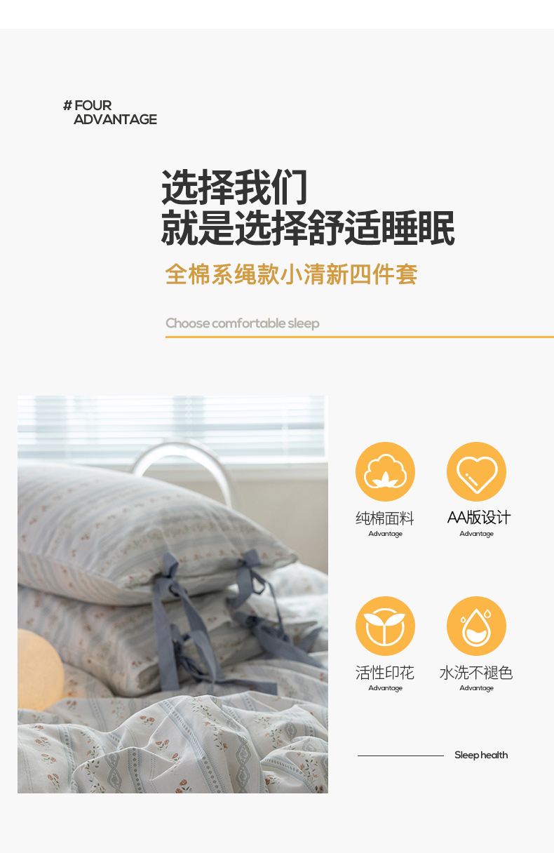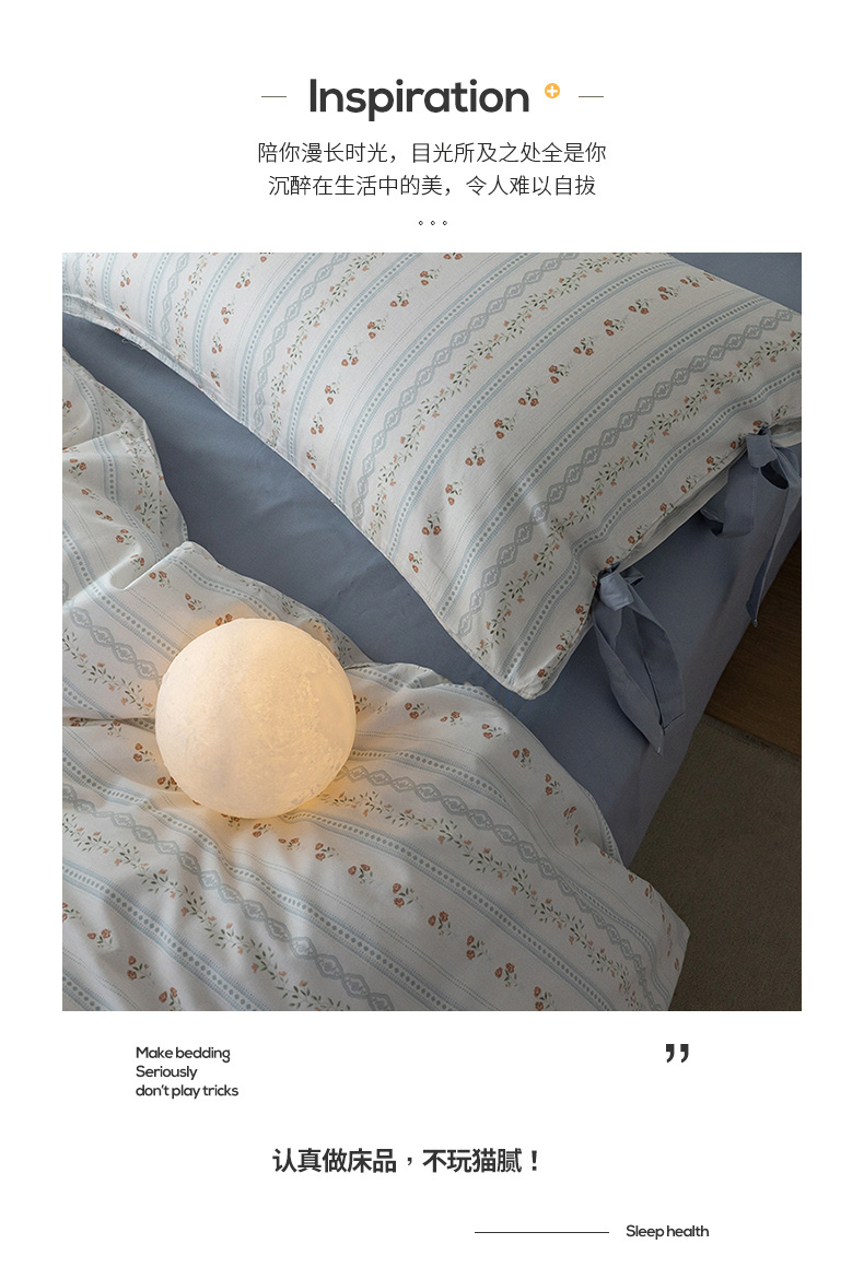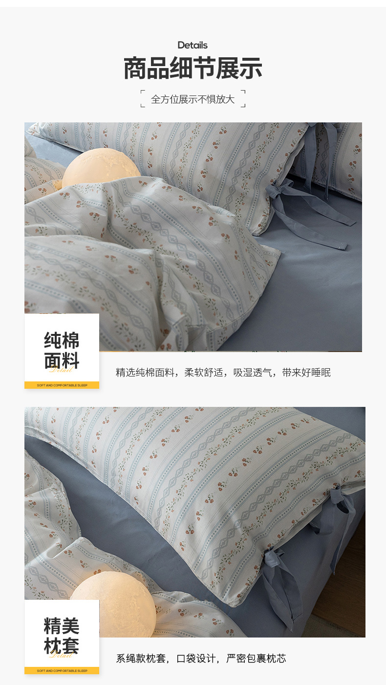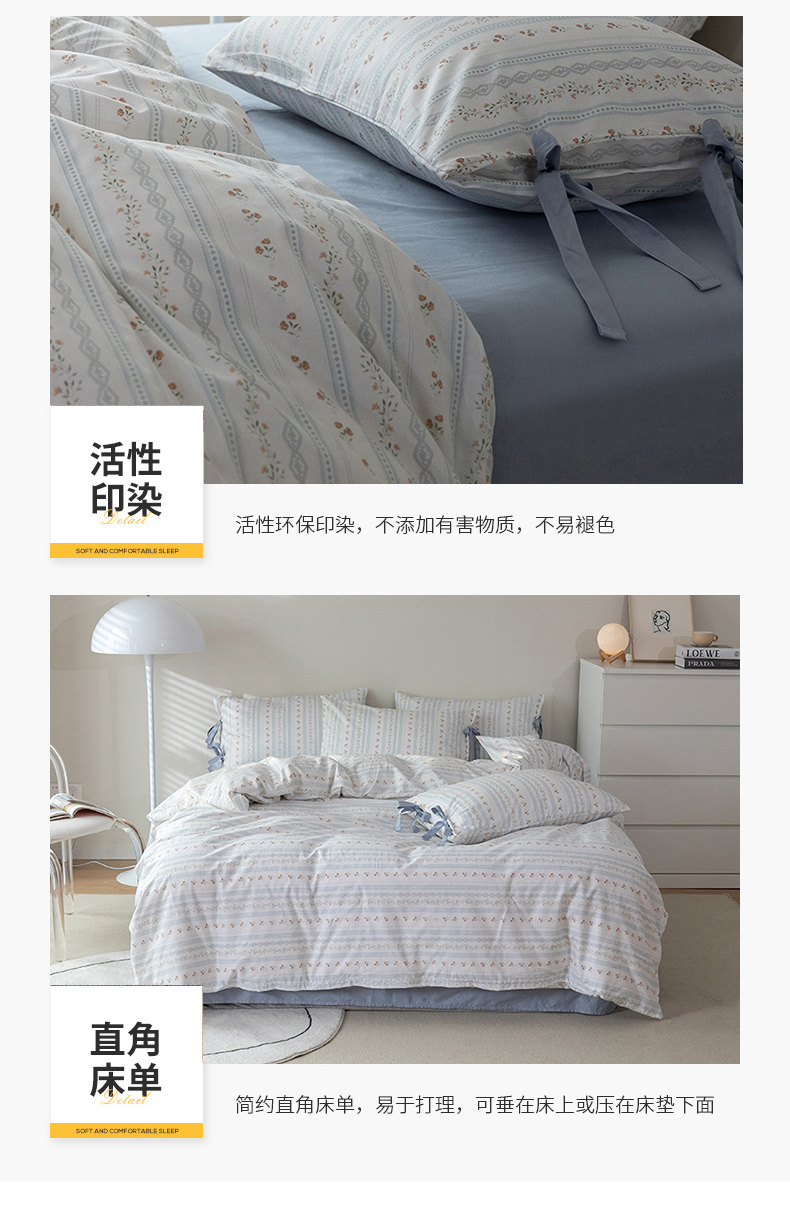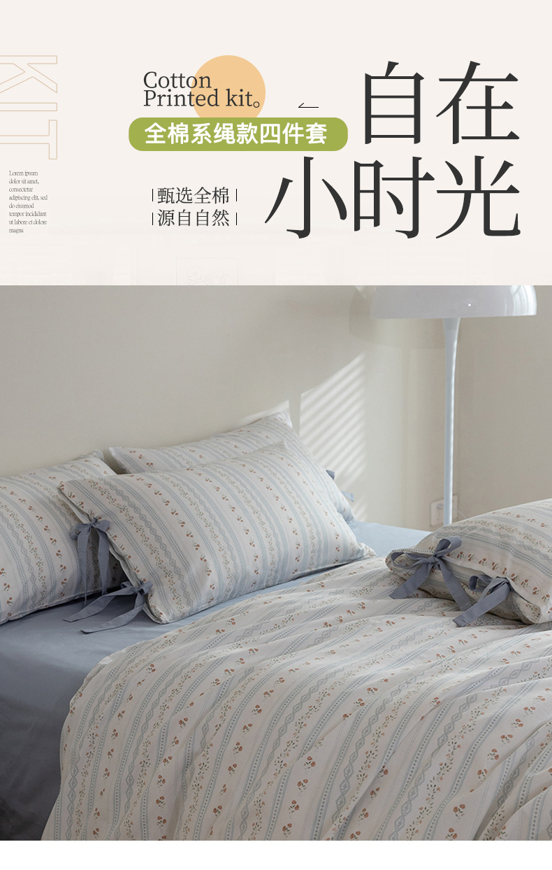 当前位置: 91家纺网 > 商品网购 > 床品套件 > 四件套 > 全棉普通四件套 > 绫韵家纺 2026新款13372全棉ins小碎花纯棉田园风床单床笠四件套系绳蝴蝶结系列二 汀兰-海港蓝