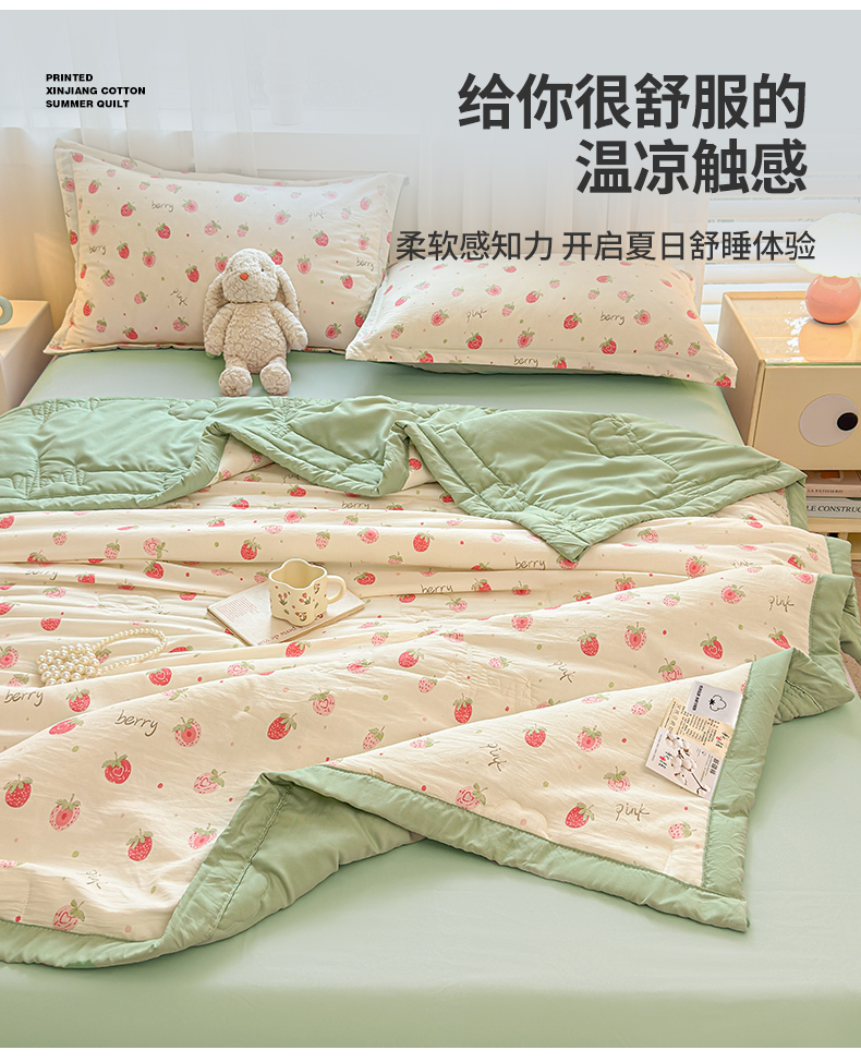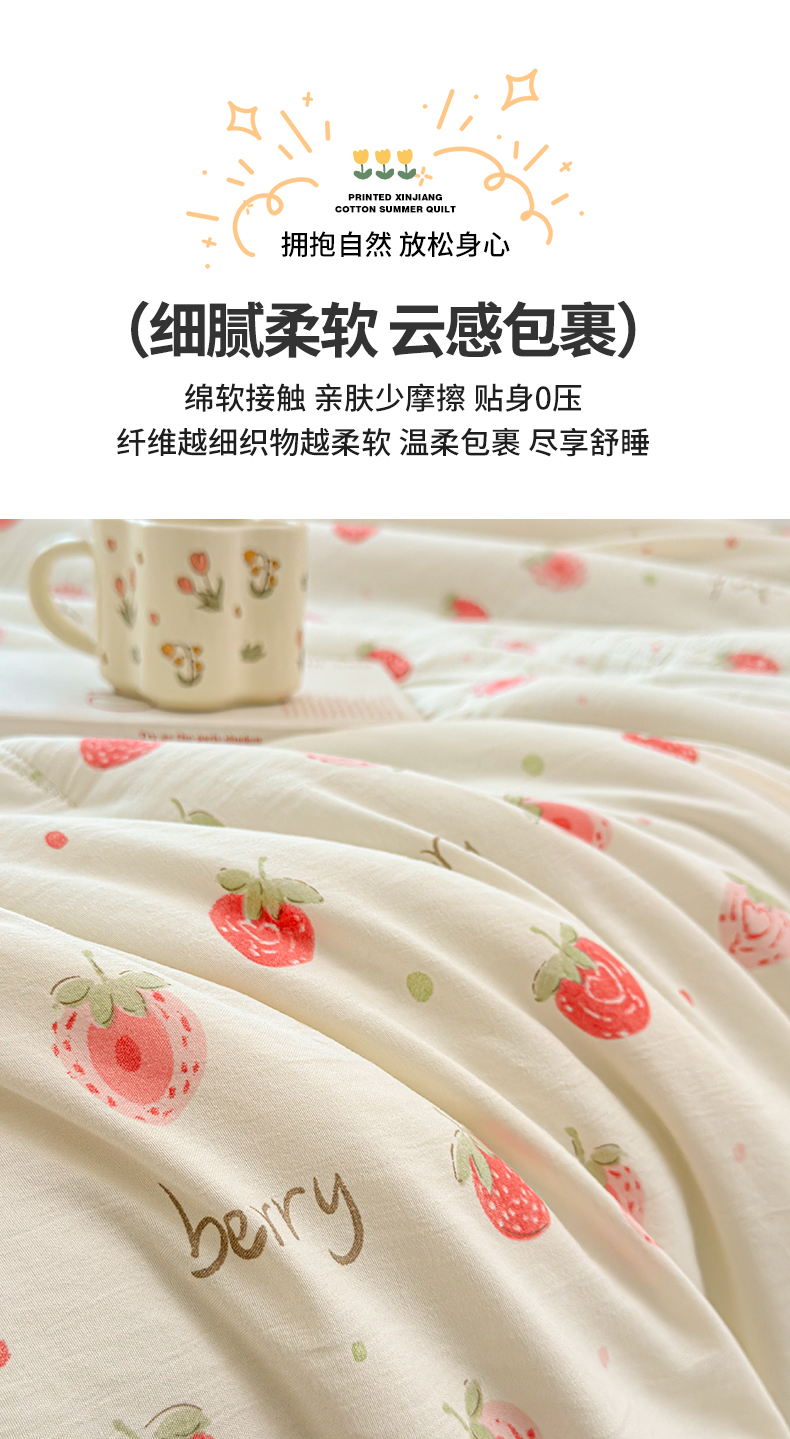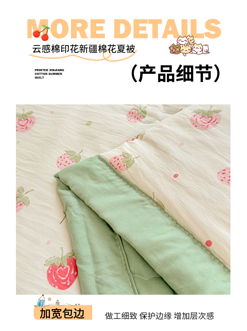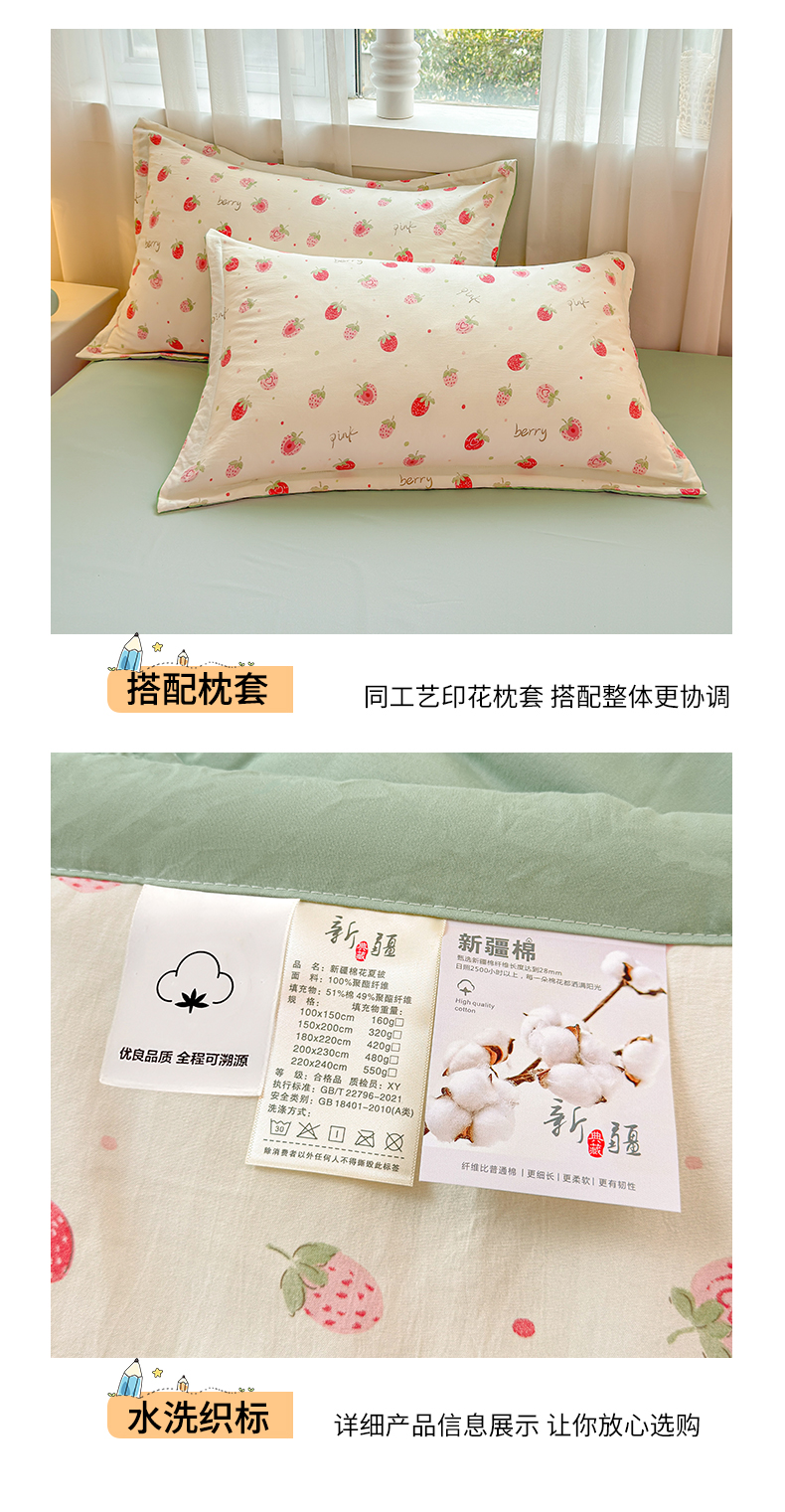 商品名称:2026新款A类新疆棉花夏凉被加宽包边水洗棉卡通印花吸湿透气棉花夏被空调被 凌香 草莓甜心