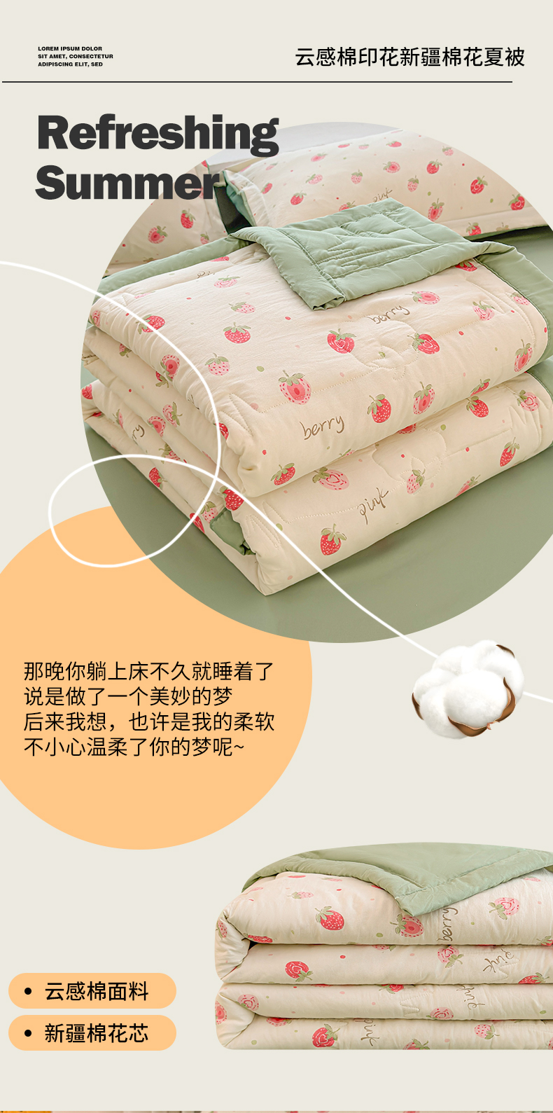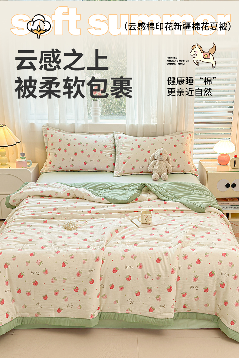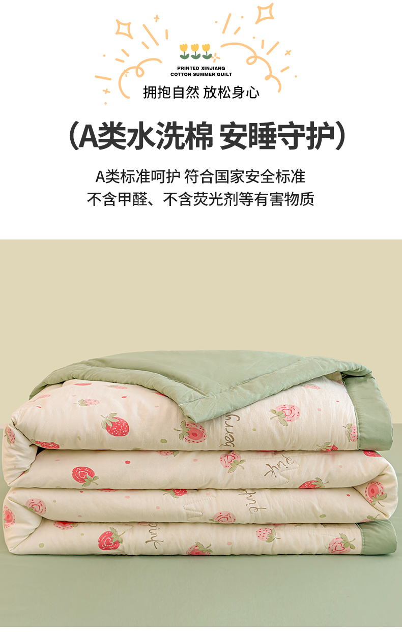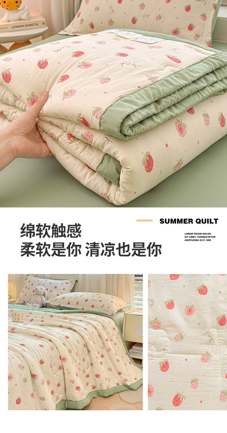 商品名称:2026新款A类新疆棉花夏凉被加宽包边水洗棉卡通印花吸湿透气棉花夏被空调被 凌香 草莓甜心