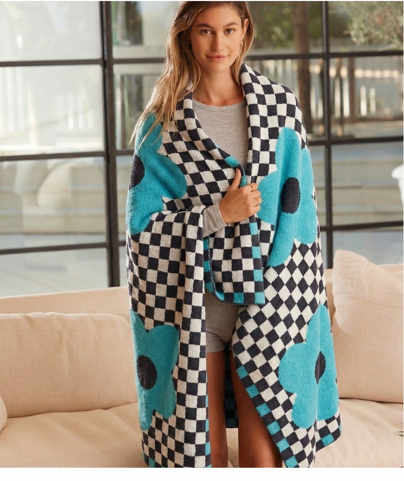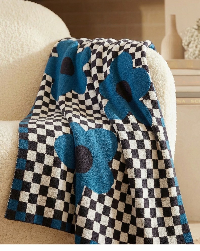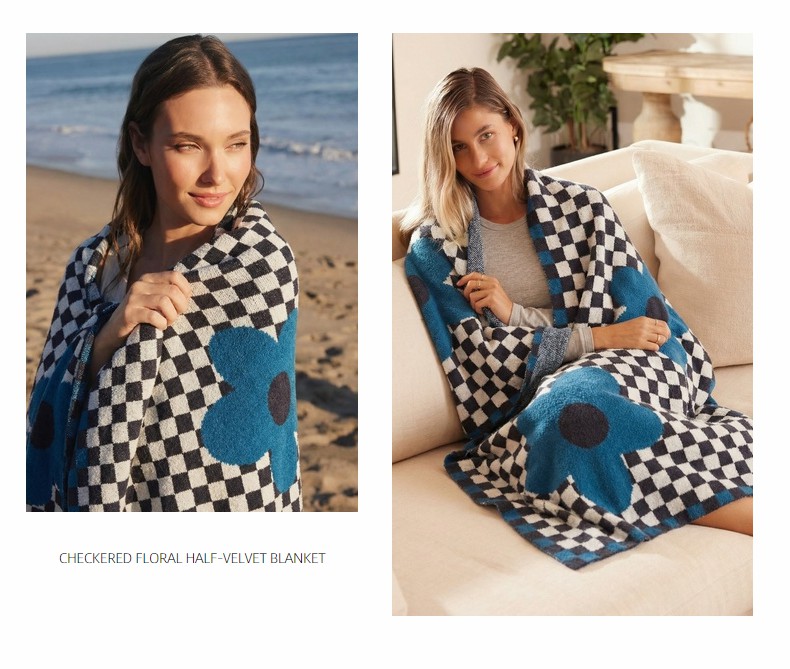 商品名称:暖绵绵家纺 2026新款半边绒软糯棋盘花镜盖毯-艾莎 艾莎-蓝色