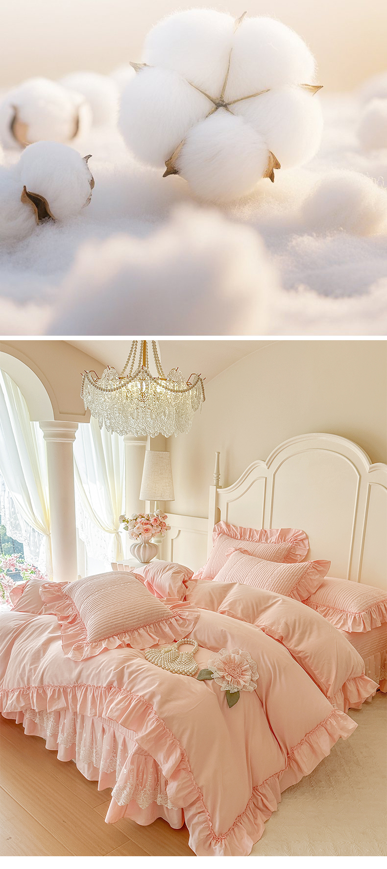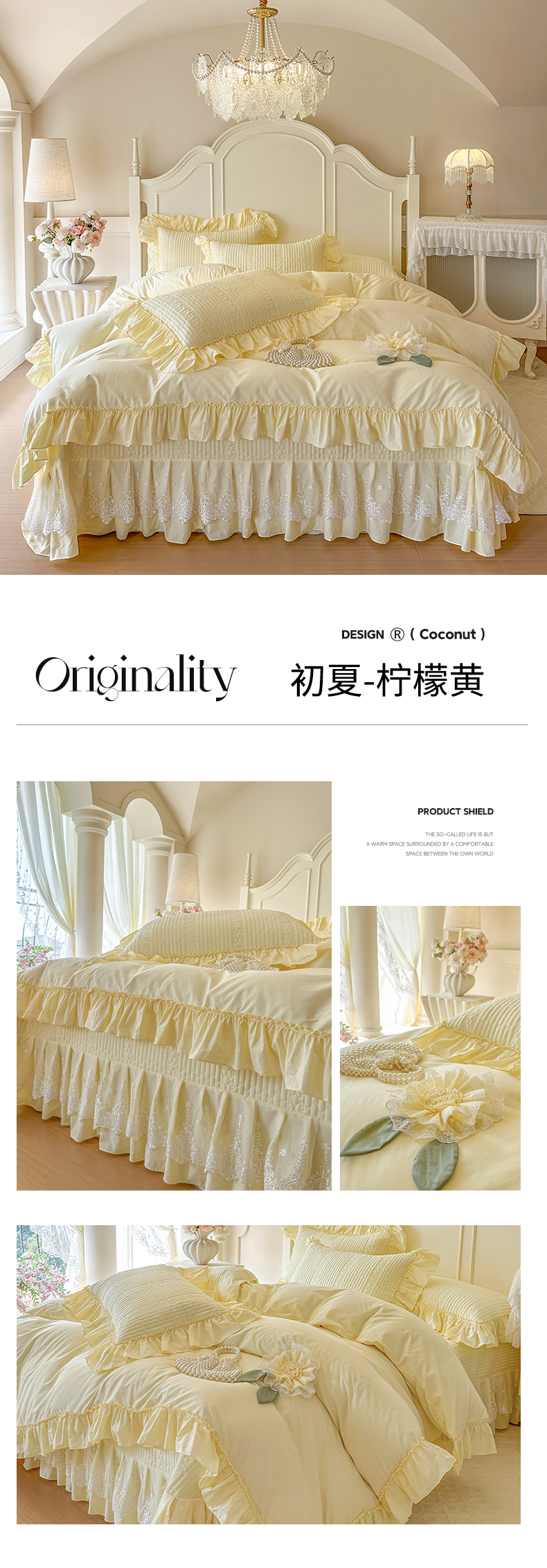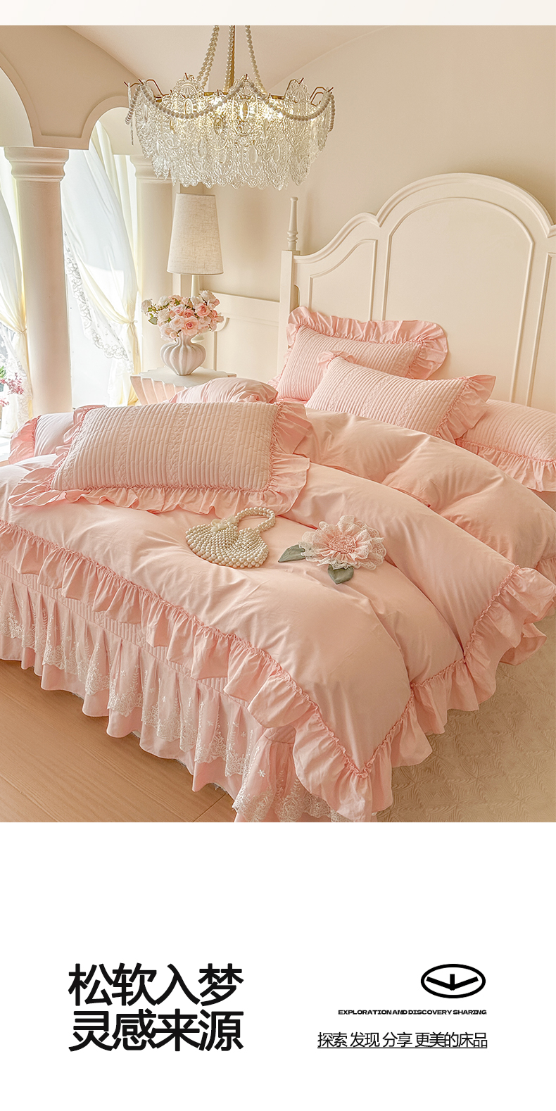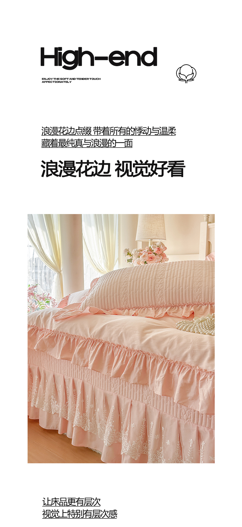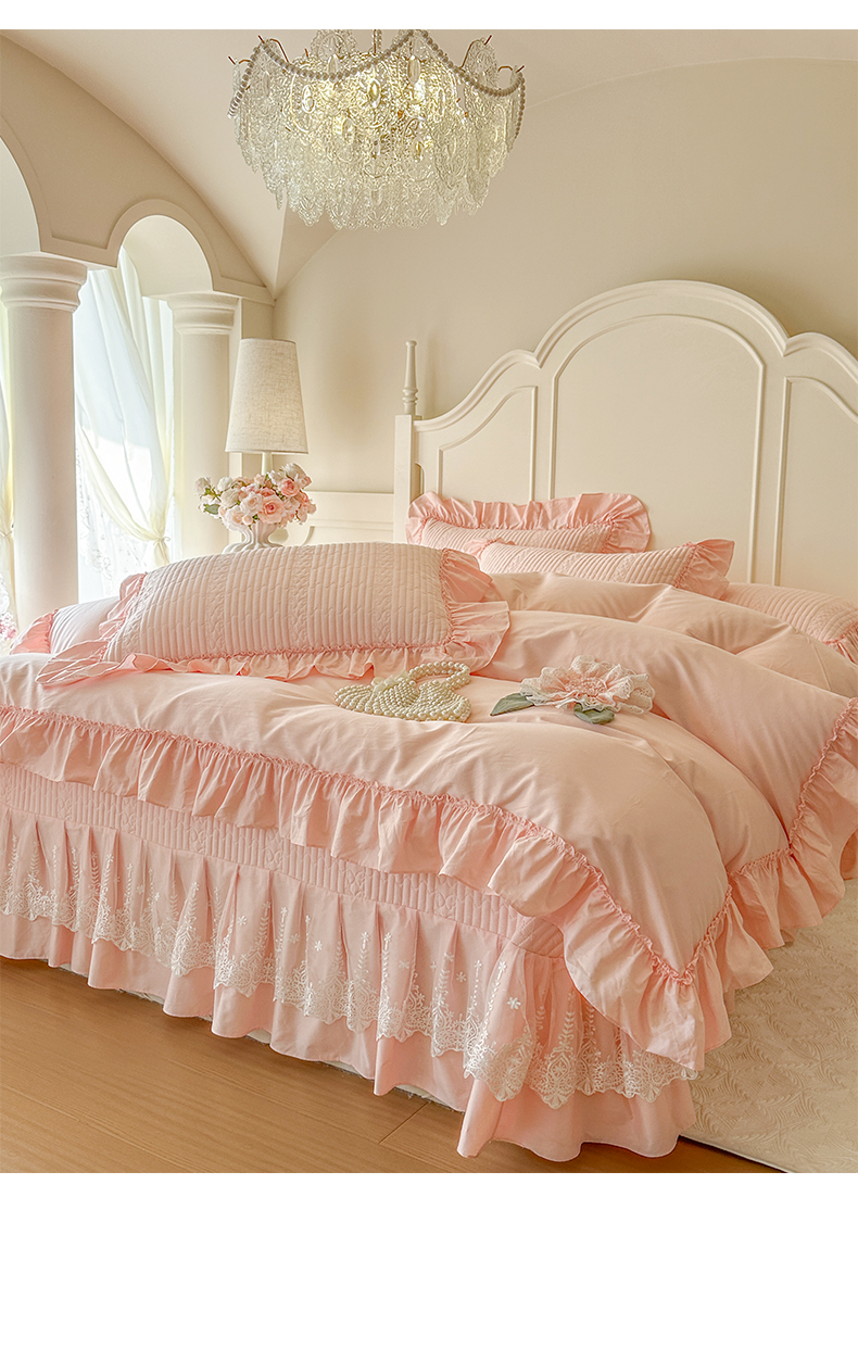 (总)瑞宝 2025新款法式花边全棉贡缎提花床裙款四件套-梦之语(控价265起),梦之语-蜜粉,梦之语-奶油白,梦之语-青柠绿,梦之语-香芋紫