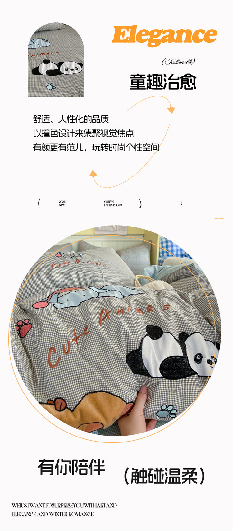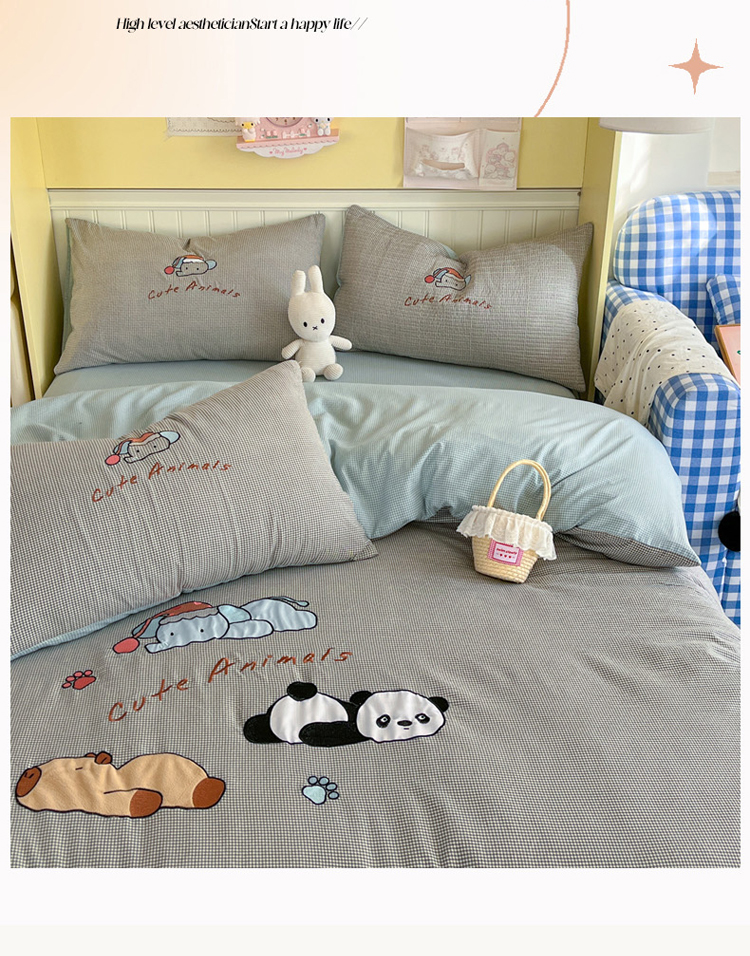 当前位置: 91家纺网 > 商品网购 > 床品套件 > 四件套 > 水洗棉四件套 > 丫丫家纺 2026新款古法水洗棉贴布绣床单款四件套 熊猫卡皮