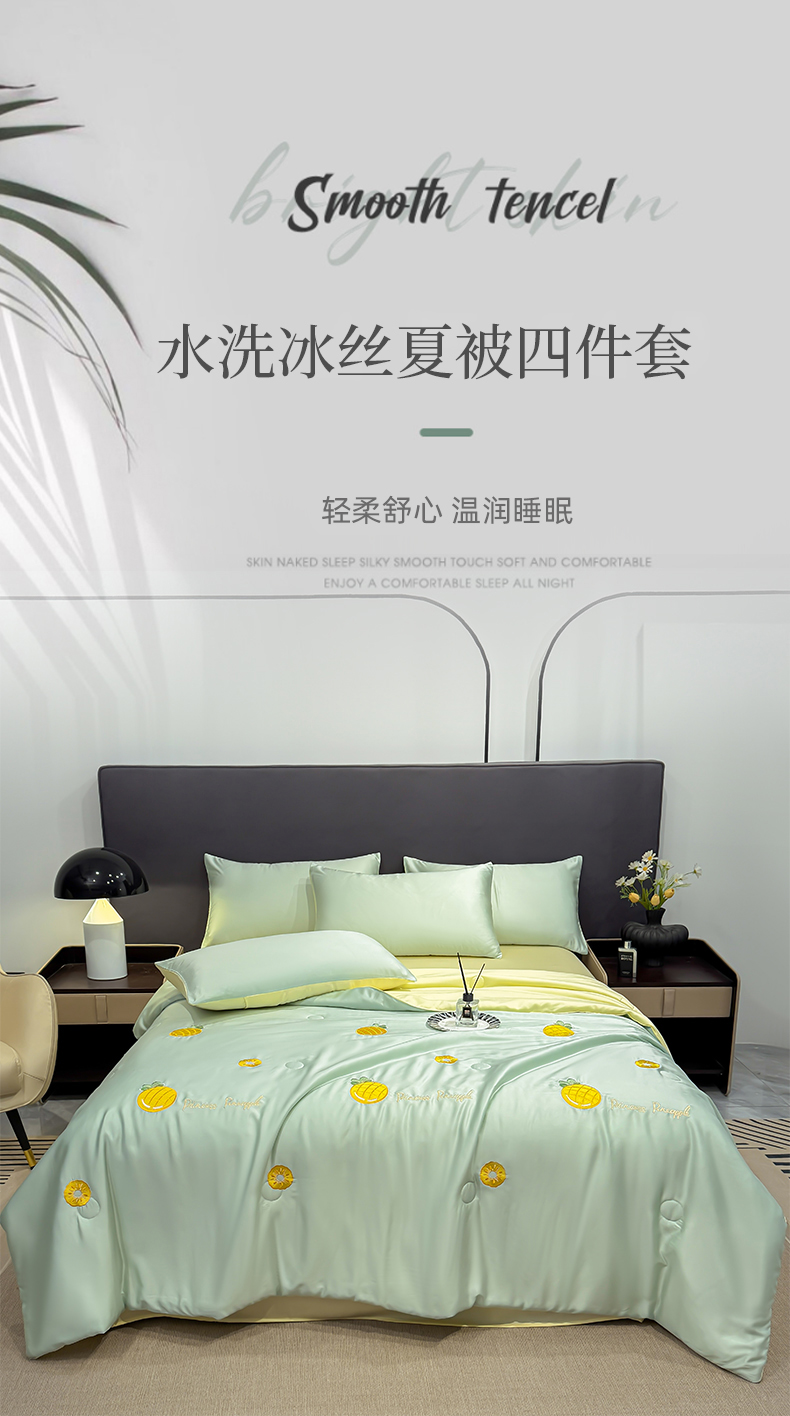 当前位置: 91家纺网 > 商品网购 > 床品套件 > 四件套 > 夏被四件套 > 恒畅 2026新款满绣水洗冰丝夏被夏被四件套 菠萝织夏-水绿黄