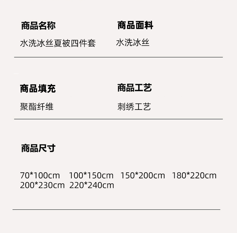 1.8*2.2m夏被四件套 | ¥70.00 |
