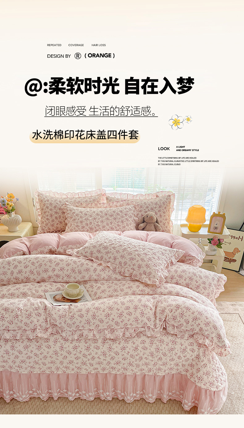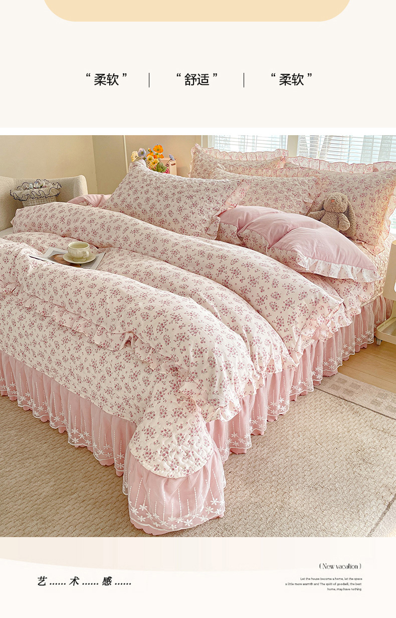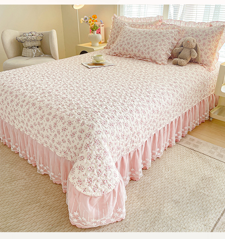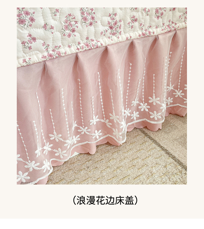 当前位置: 91家纺网 > 商品网购 > 床品套件 > 四件套 > 其它四件套 > 艺慕家纺 2026新款直播热款古法仿棉水洗棉印花双层蕾丝花边床盖四件套 粉色樱花