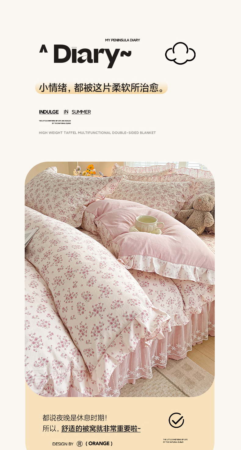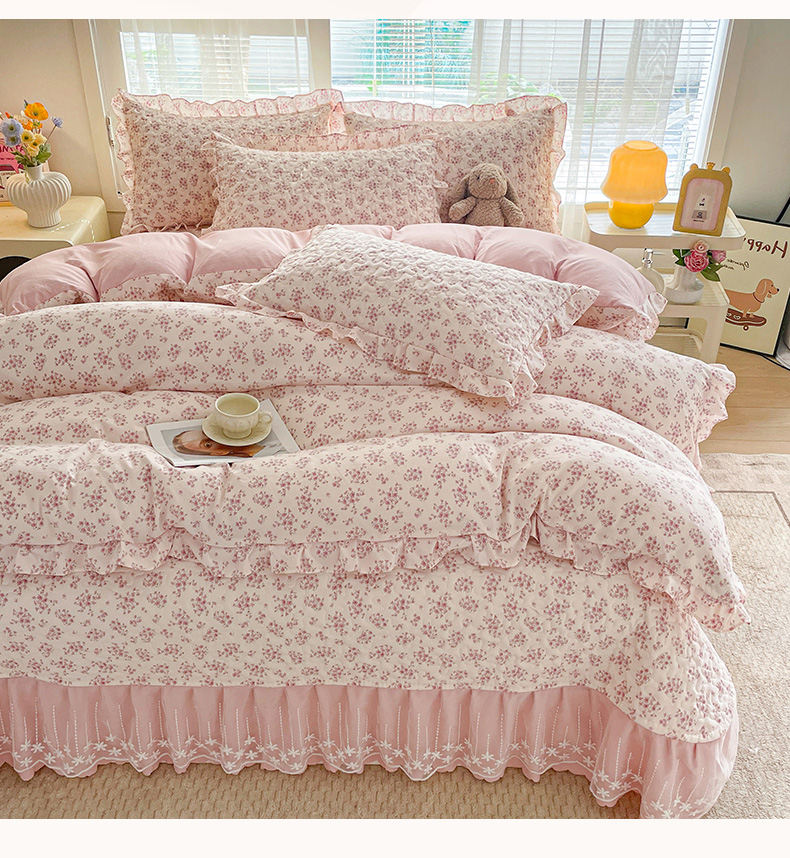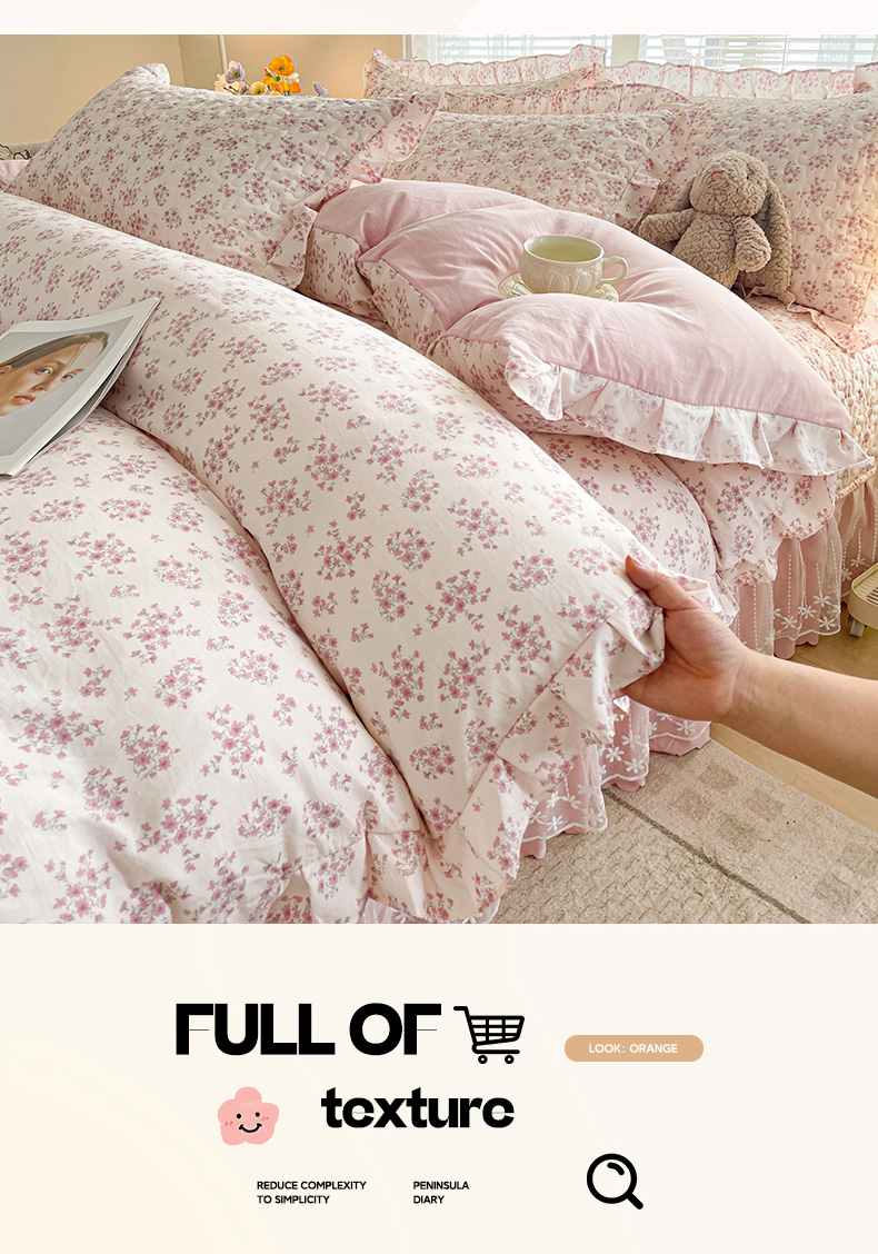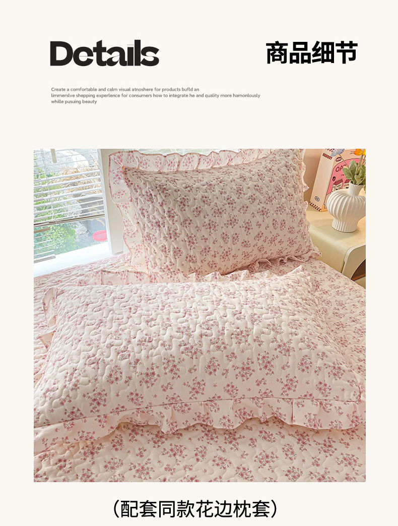 当前位置: 91家纺网 > 商品网购 > 床品套件 > 四件套 > 其它四件套 > 艺慕家纺 2026新款直播热款古法仿棉水洗棉印花双层蕾丝花边床盖四件套 粉色樱花