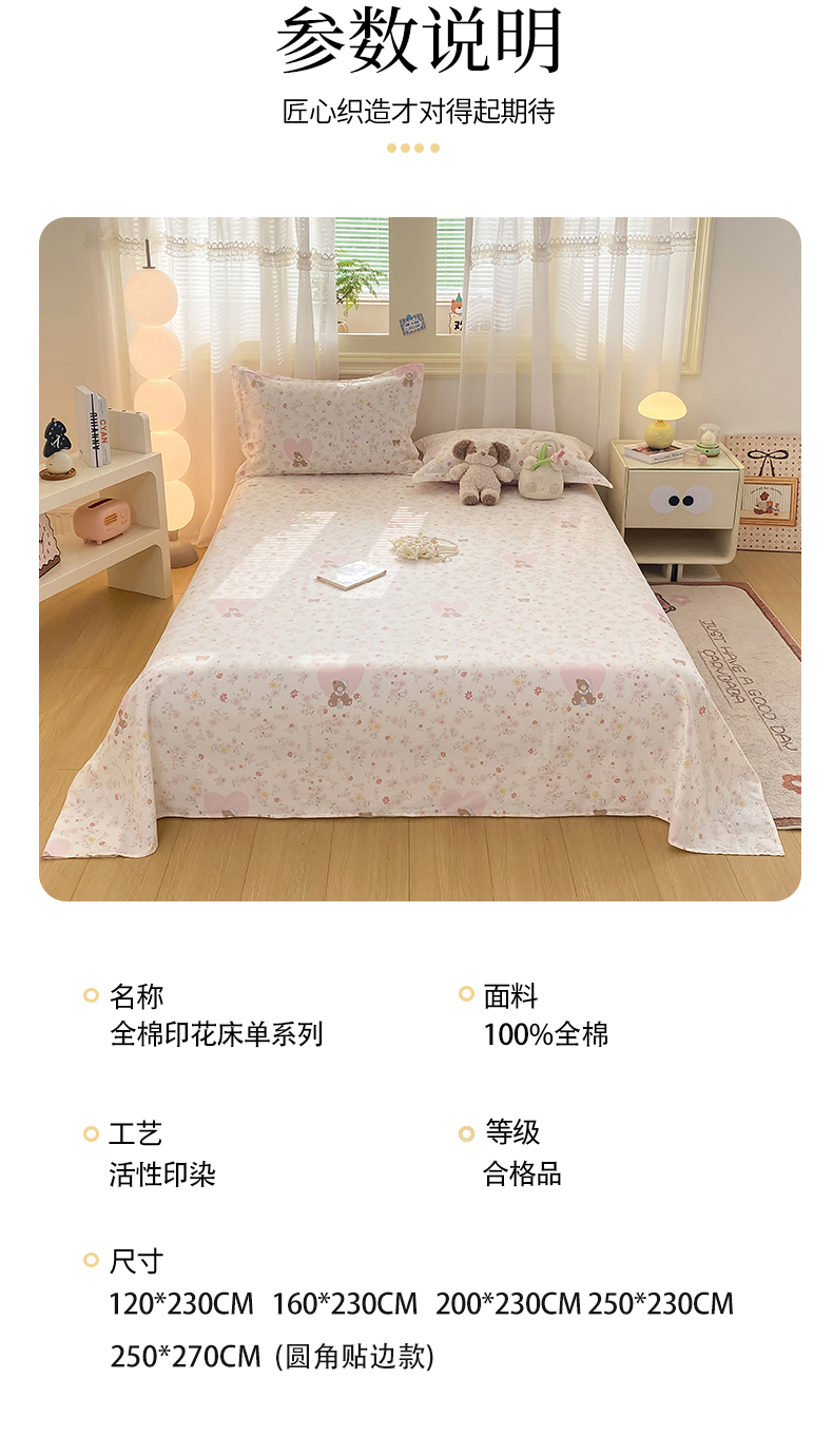 (总)女子家纺 2026新款全棉印花小清新系列-单床单,柏林梦境豆沙,柏林梦境绿,班纳花园,畅游星球,大眼恐龙蓝,灯火阑珊,繁星,扶绿花园,光辉岁月,果酱电台,花丛兔兰,花恋,花园芬芳,花中仙子,旧书折痕粉,酷卡小狗,洛克庄园红,萌宠国度,摩菲,暖樱之舞,欧风花影,碎花兔熊,甜心汪星人,童趣绘彩,兔兔乐园,仙草,小橙橘,小熊安缦,樱桃甜宠,樱姿米,幽兰时光兰,悦下花影,栀夏海棠蓝