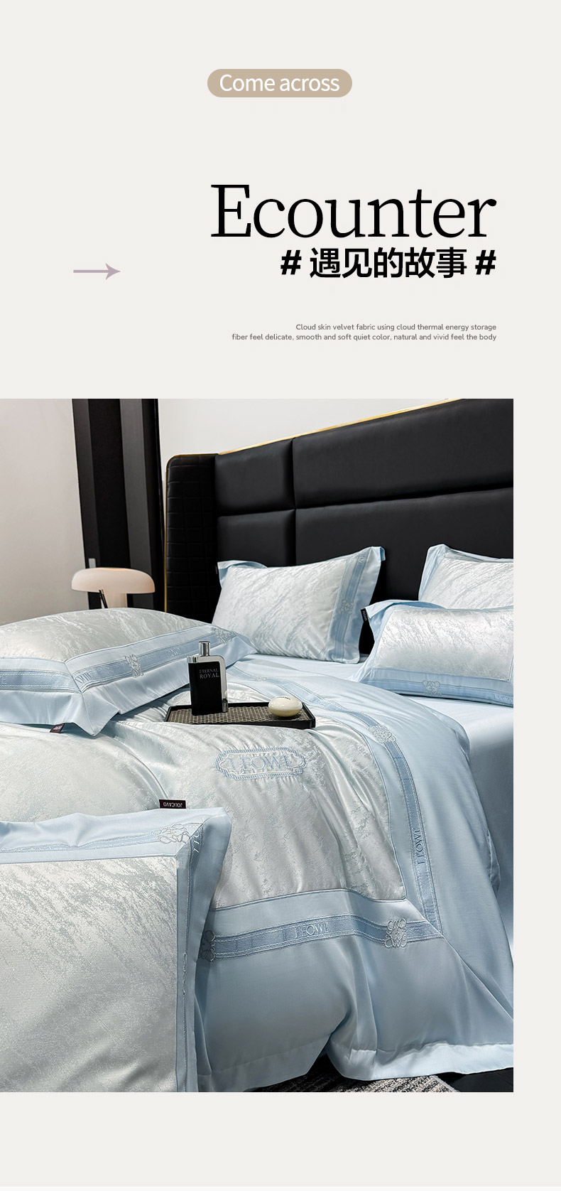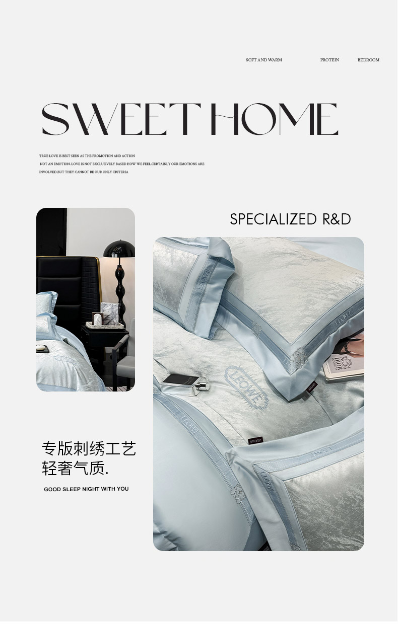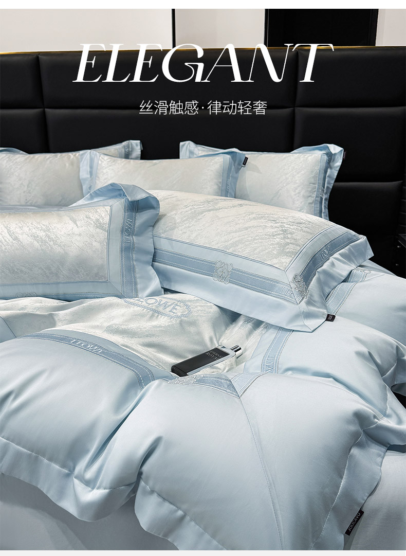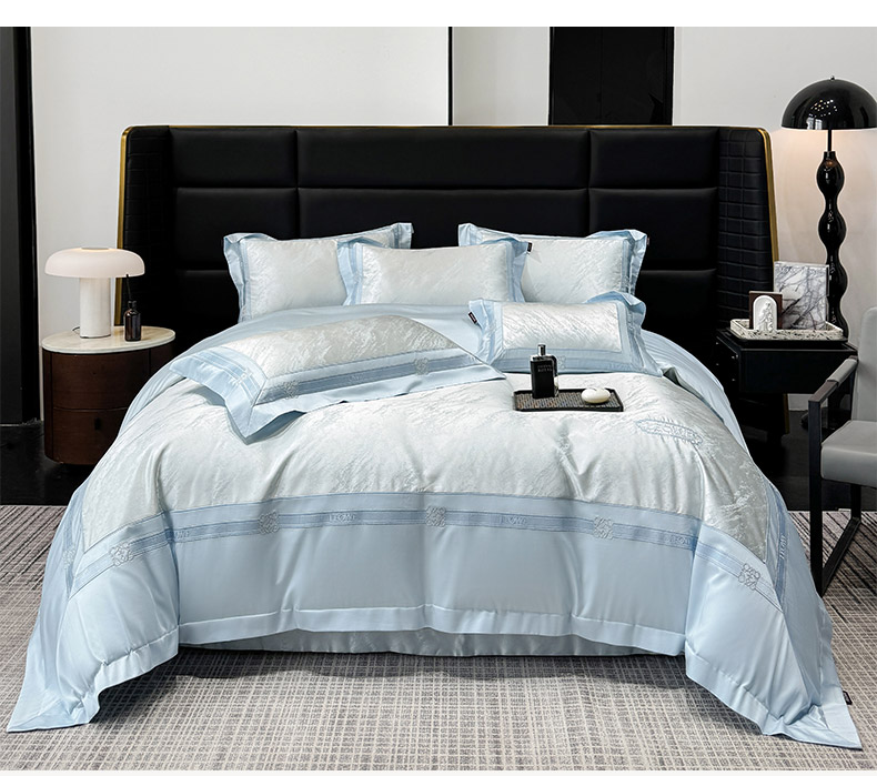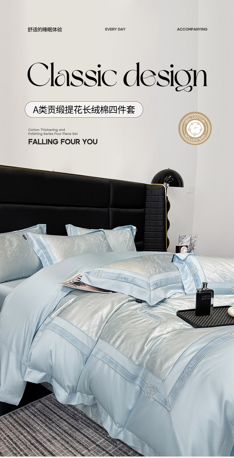 当前位置: 91家纺网 > 商品网购 > 床品套件 > 四件套 > 长绒棉四件套 > 爱妮菲家纺 2026春夏新品高端A类贡缎提花长绒棉纯棉四件套100全棉提花被套床单床笠高级感床上用品-慕笙 慕笙-柔雾蓝