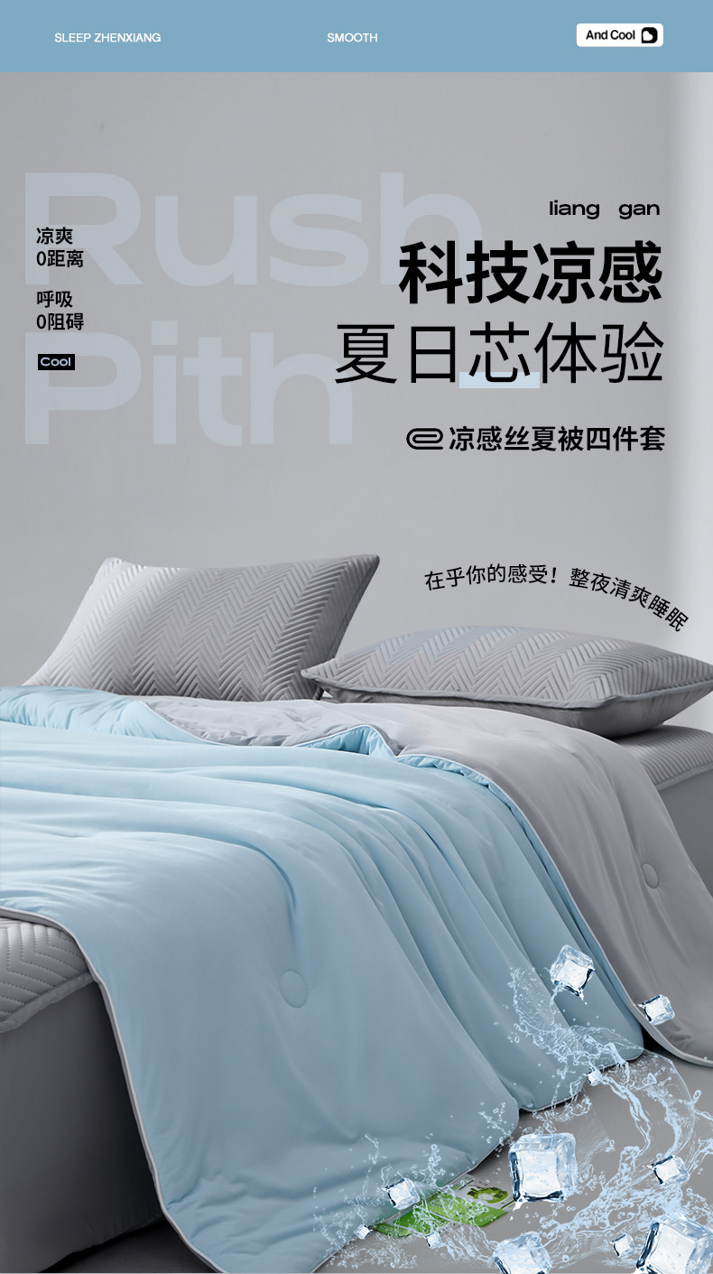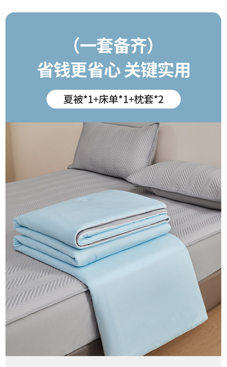 吾诺家居 2026新款冰爽系列-凉感丝夏被四件套 冰蓝